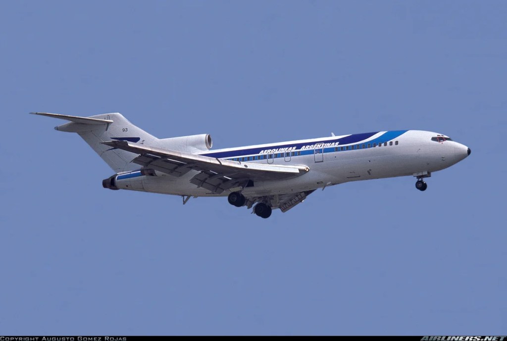 AvAtlantic Airlines Boeing 727-23, N1993, is shown wearing Aerolineas Argentinas colors while arriving at Mexico City in September 1993.