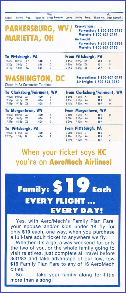 Aeromech Airlines February 1, 1983 System Timetable PREVIOUS PAGE MAIN PAGE Share this: Click to share on X (Opens in new window) X Click to share on Facebook (Opens in new window) Facebook Like Loading...