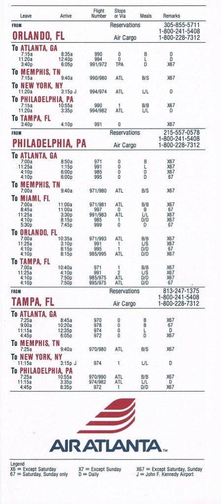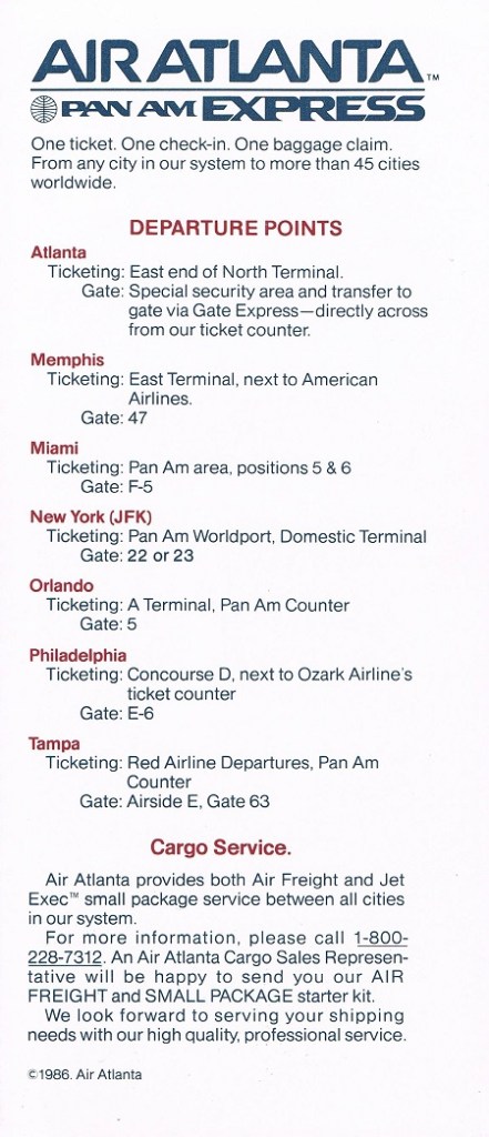Air Atlanta January 19, 1986 System Timetable PREVIOUS PAGE MAIN PAGE Share this: Click to share on X (Opens in new window) X Click to share on Facebook (Opens in new window) Facebook Like Loading...