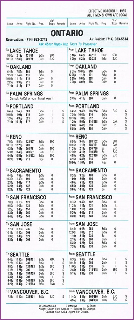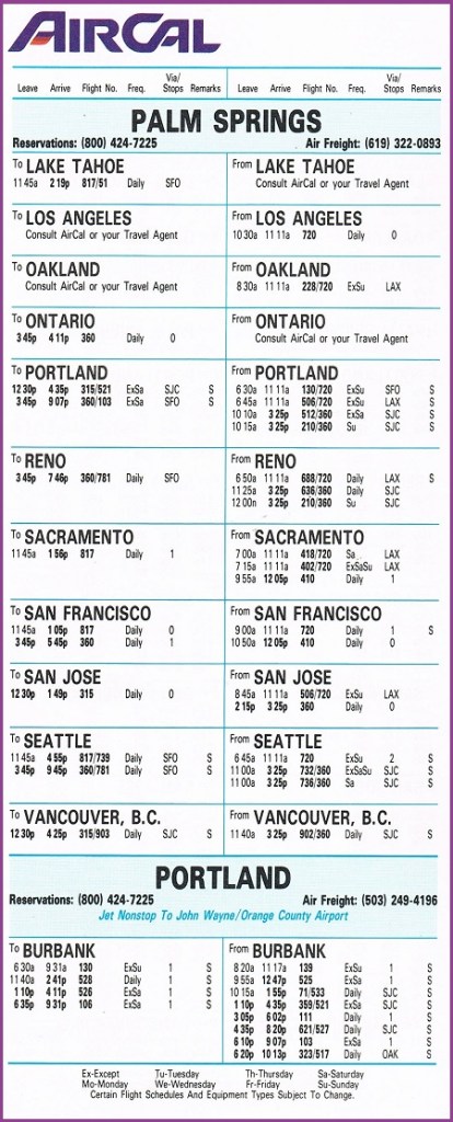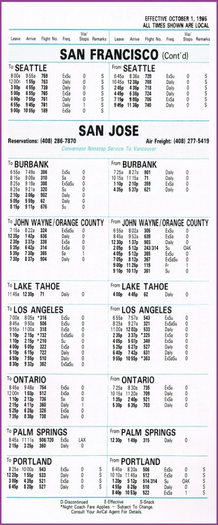 Air Cal October 1, 1985 System Timetable PREVIOUS PAGE MAIN PAGE Share this: Click to share on X (Opens in new window) X Click to share on Facebook (Opens in new window) Facebook Like Loading...