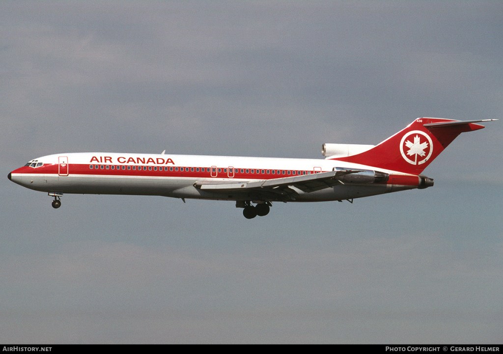Air Canada Boeing 727-233, C-GAAS, is shown at San Francisco on October 21, 1991 wearing the carrier’s 1988-introduced livery.