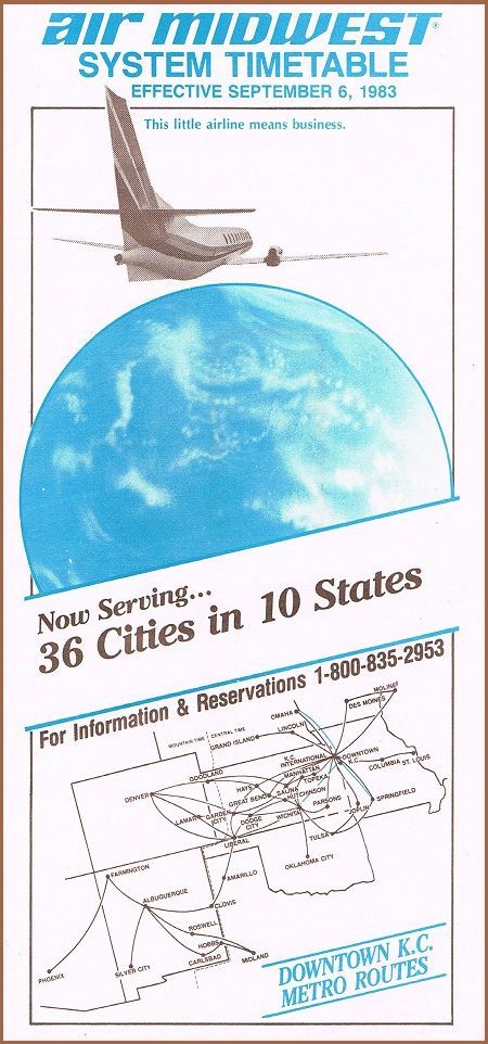 Air Midwest September 6, 1983 System Timetable PREVIOUS PAGE MAIN PAGE Share this: Click to share on X (Opens in new window) X Click to share on Facebook (Opens in new window) Facebook Like Loading...