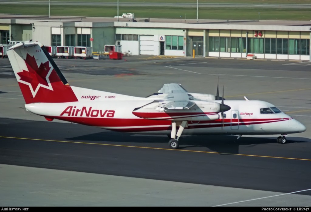 Air Nova De Havilland Canada Dash 8-100 Air Nova De Havilland Canada DHC-8-102 Dash 8, C-GONO, is shown at Montreal on October 30, 1990. (Photo credit: LRS747) Share this: Click to share on X (Opens in new window) X Click to share on Facebook (Opens in new window) Facebook Like Loading...