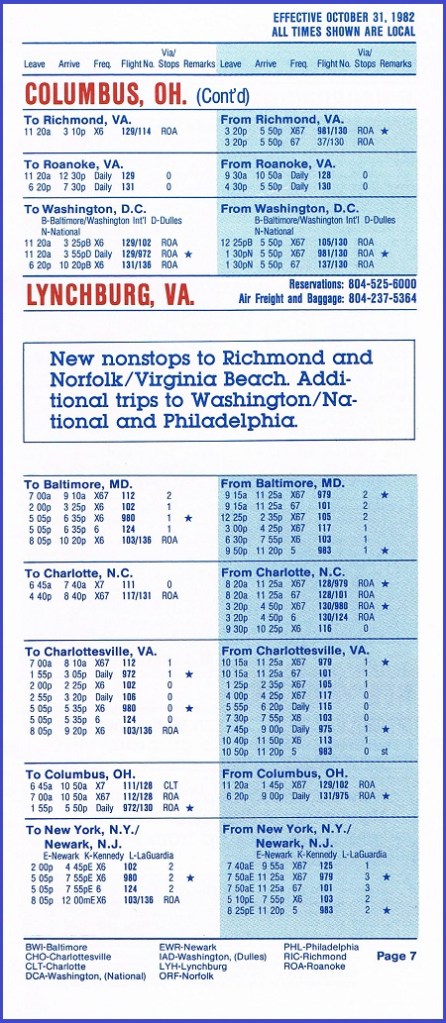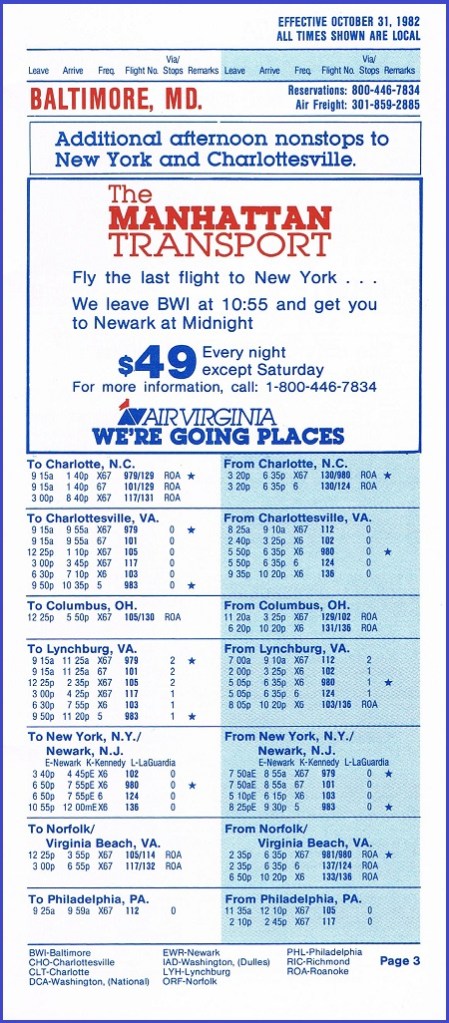 Air Virginia October 31, 1982 System Timetable PREVIOUS PAGE MAIN PAGE Share this: Click to share on X (Opens in new window) X Click to share on Facebook (Opens in new window) Facebook Like Loading...