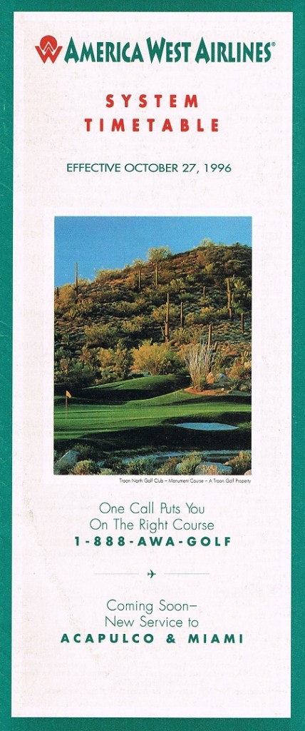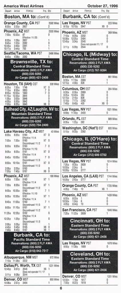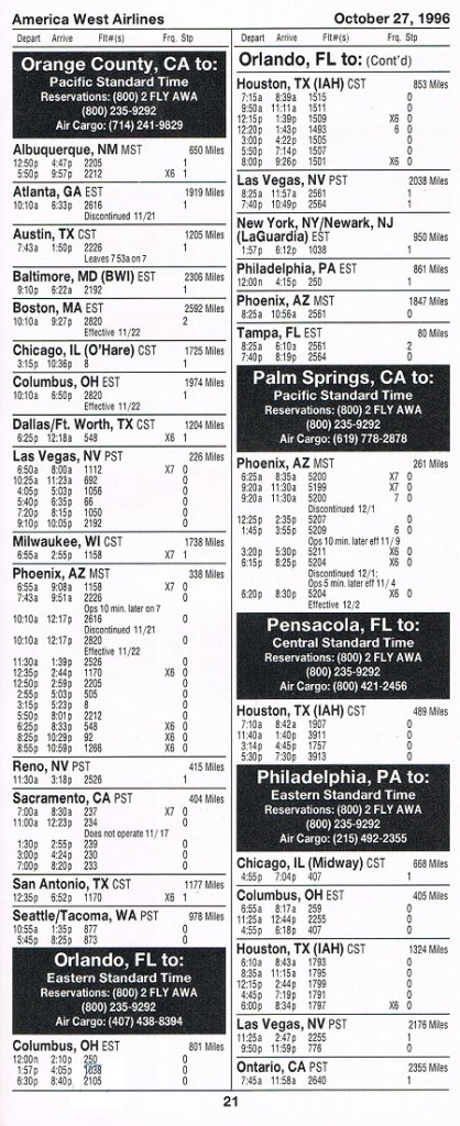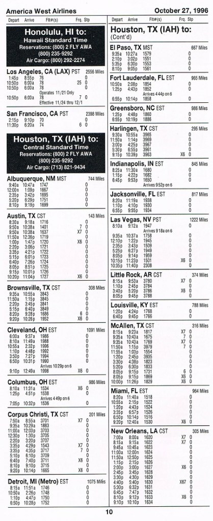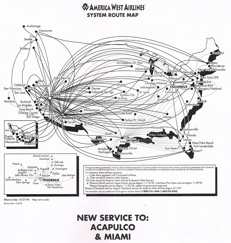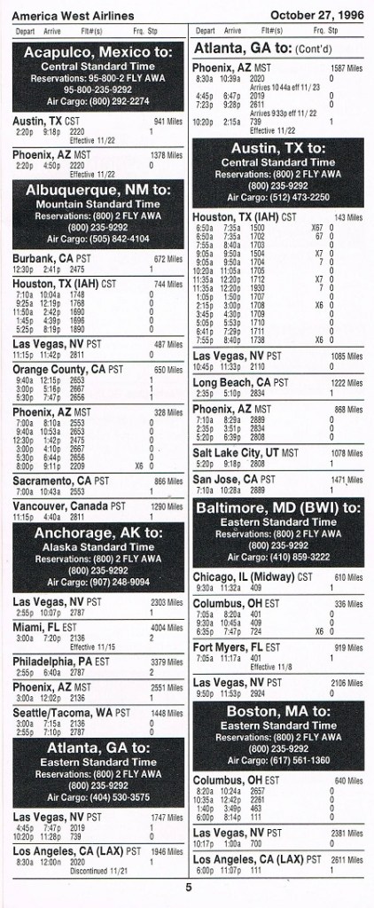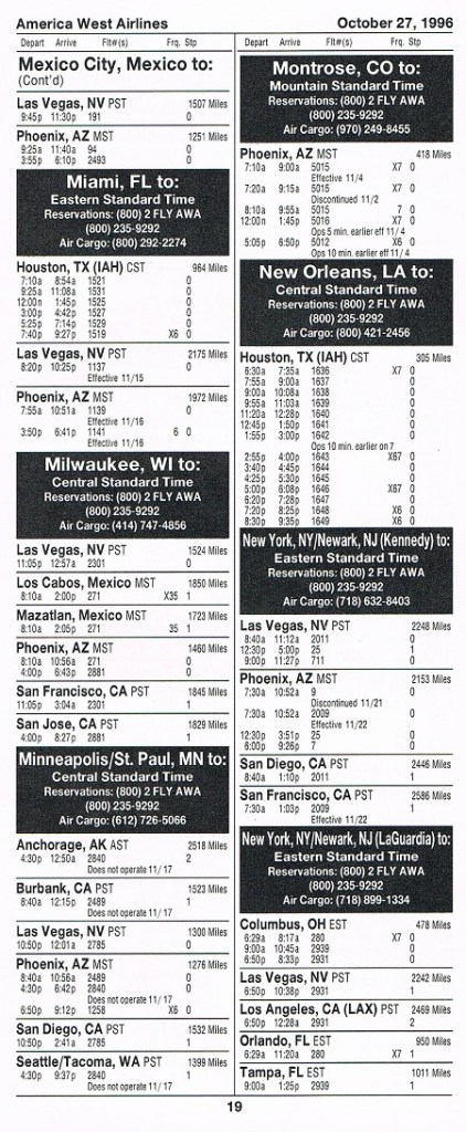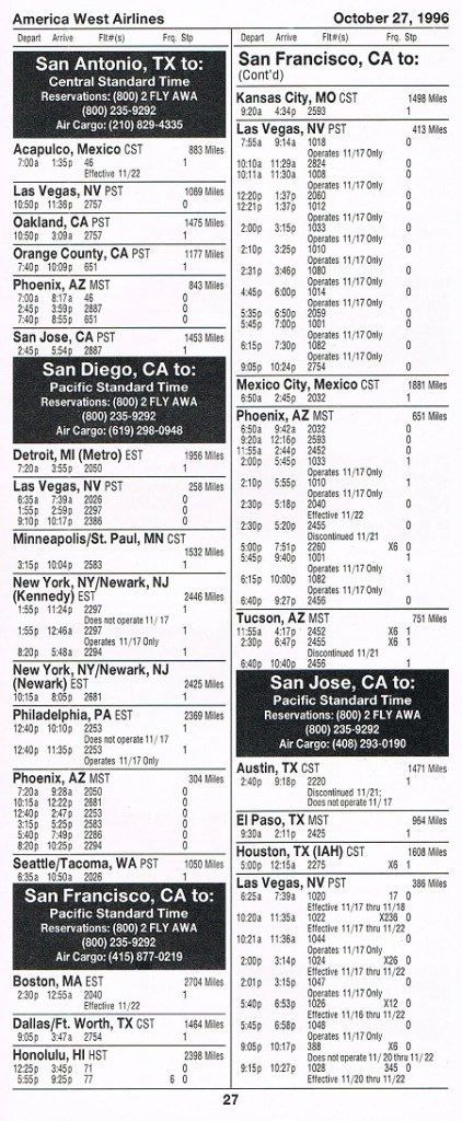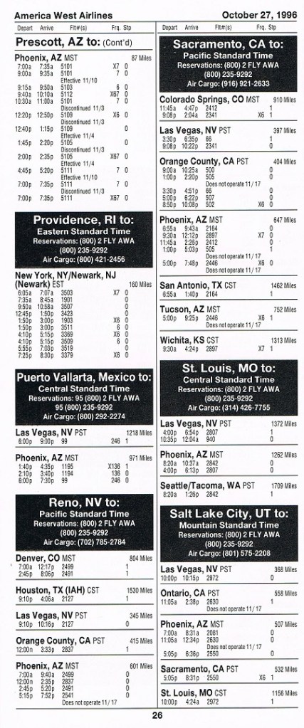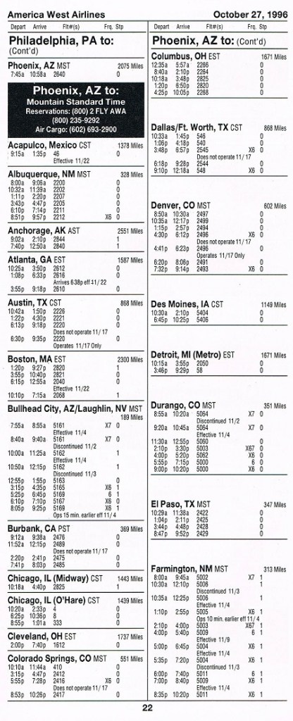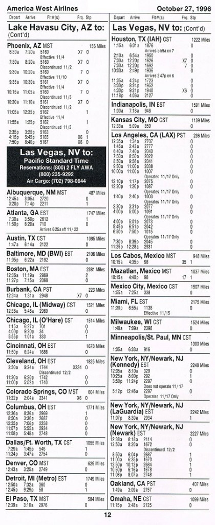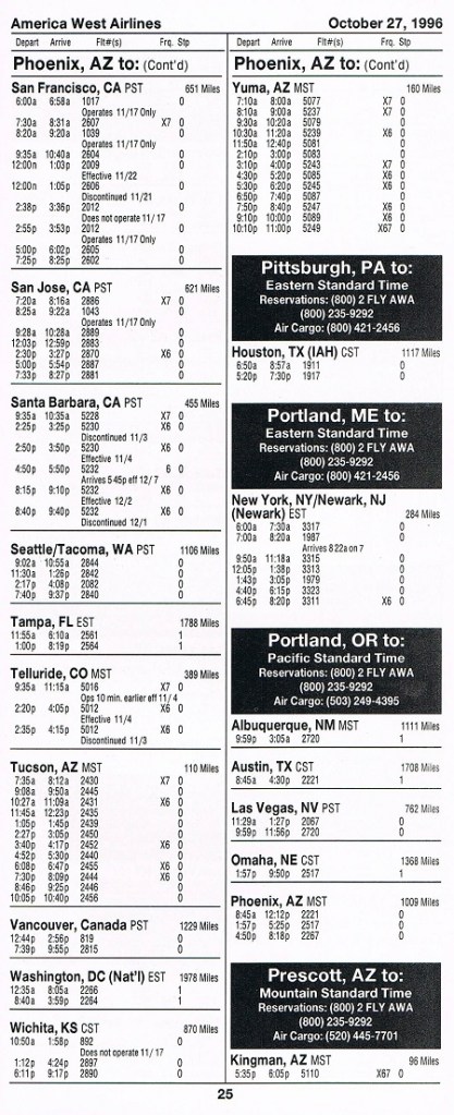 America West Airlines October 27, 1996 System Timetable PREVIOUS PAGE MAIN PAGE Share this: Click to share on X (Opens in new window) X Click to share on Facebook (Opens in new window) Facebook Like Loading...