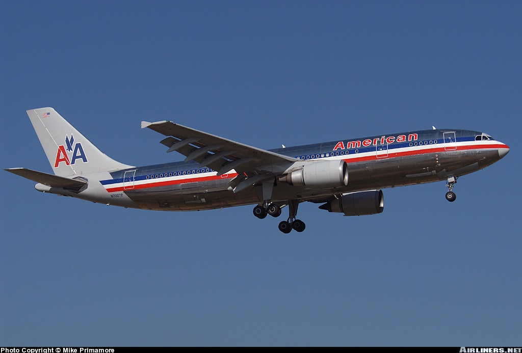 American Airlines Airbus A300B4-605R, N70072, is shown arriving at Kennedy International Airport on October 28, 2003.