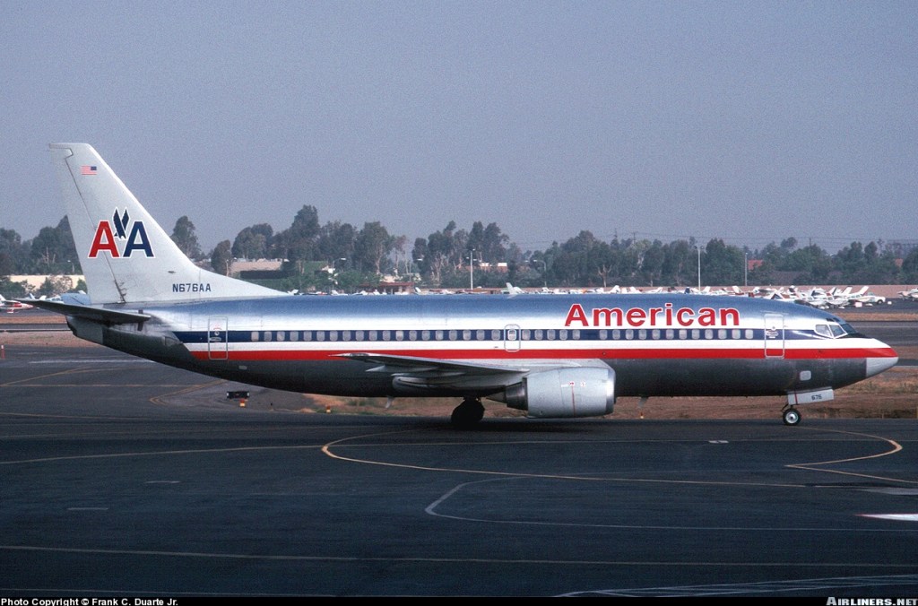 American Airlines Boeing 737-34A, N676AA, is shown at Orange County in August 1989.