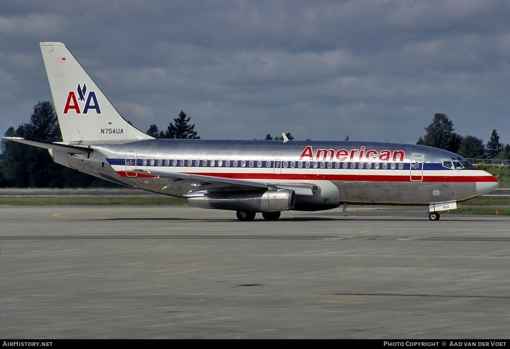 American Airlines Boeing 737-244, N754UA, is shown at Seattle/Tacoma on May 24, 1990.