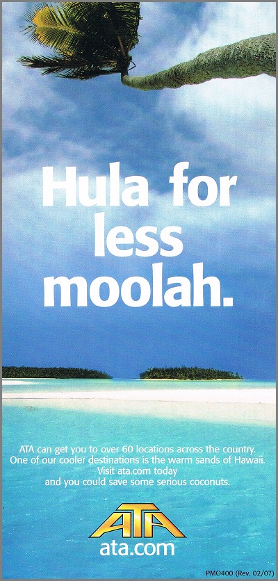 American Trans Air/ATA Airlines Ticket Jackets October 1988 June 1990 December 1999 February 2007 Advertisement appearing in above ticket jacket << AMERICAN AIRLINES ARIZONA AIRWAYS >> TICKET JACKETS MAIN PAGE MAIN PAGE Share this: Click to share on X (Opens in new window) X Click to share on Facebook (Opens in new window) Facebook Like Loading...