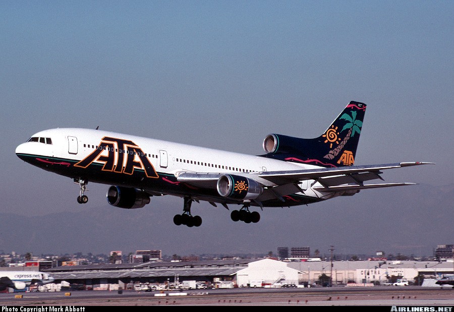 American Trans Air Lockheed L-1011-385-3 TriStar 500, N164AT, is shown arriving at Los Angeles on January 20, 2001.