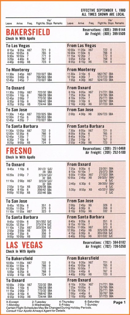 Apollo Airways System September 1, 1980 System Timetable PREVIOUS PAGE MAIN PAGE Share this: Click to share on X (Opens in new window) X Click to share on Facebook (Opens in new window) Facebook Like Loading...