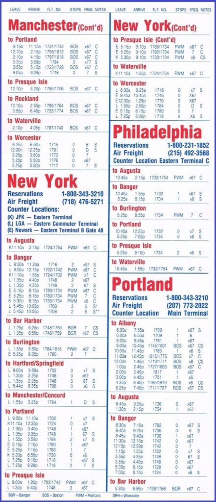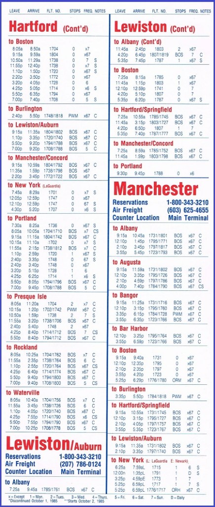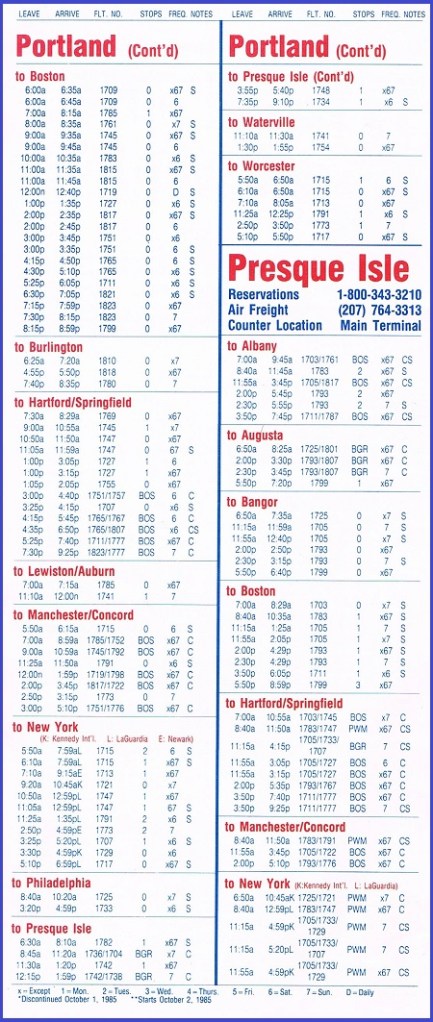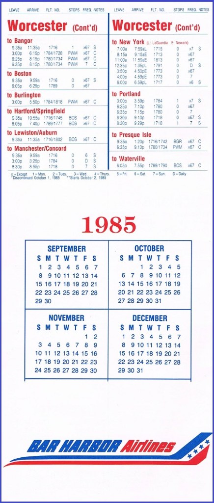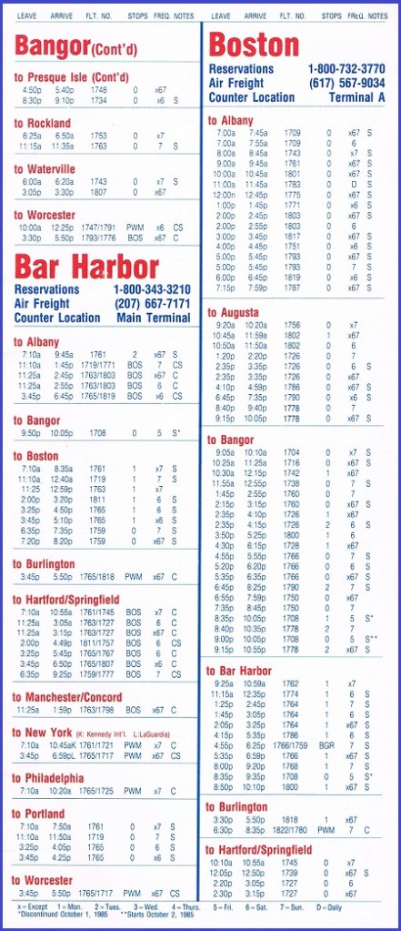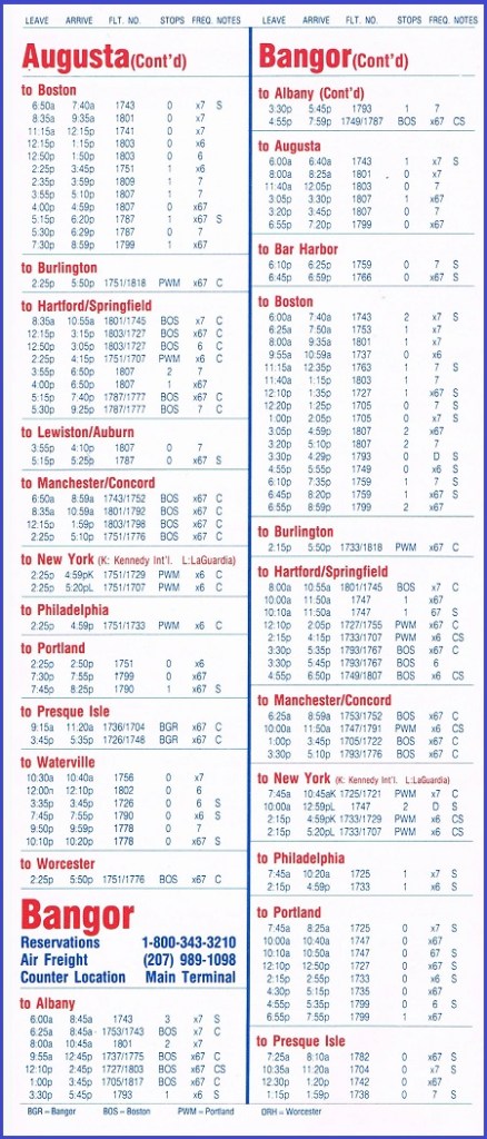 Bar Harbor Airlines September 3, 1985 System Timetable PREVIOUS PAGE MAIN PAGE Share this: Share on X (Opens in new window) X Share on Facebook (Opens in new window) Facebook Like Loading...