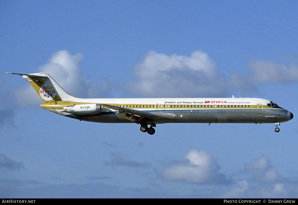 BWIA International McDonnell Douglas DC-9-51, 9Y-TGP, is shown arriving at Miami on December 10, 1982.
