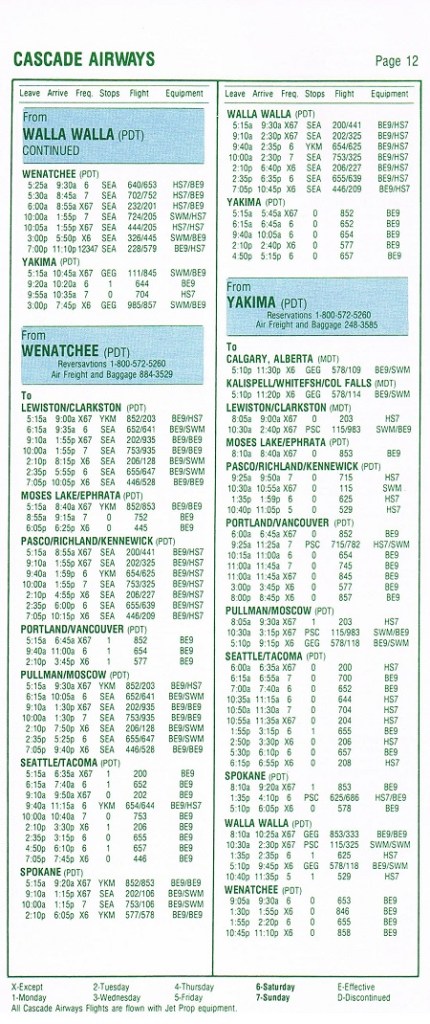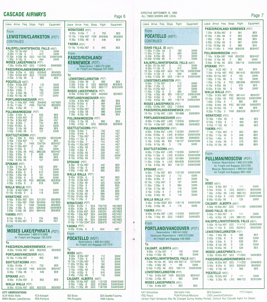 Cascade Airways September 15, 1983 System Timetable PREVIOUS PAGE MAIN PAGE Share this: Click to share on X (Opens in new window) X Click to share on Facebook (Opens in new window) Facebook Like Loading...