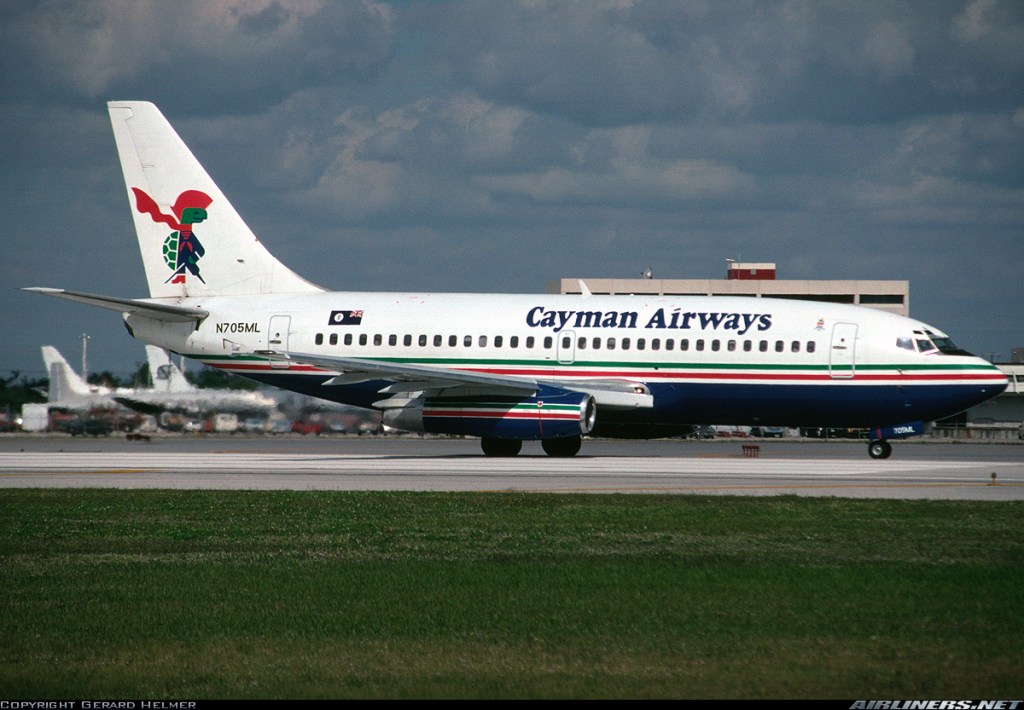 Cayman Airways Boeing 737-2T4, N705ML, is shown at Miami in December 3, 1992.
