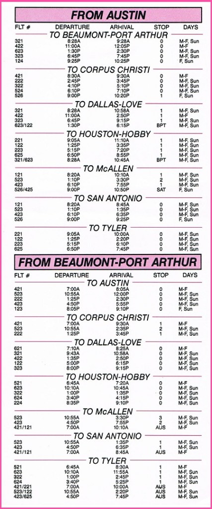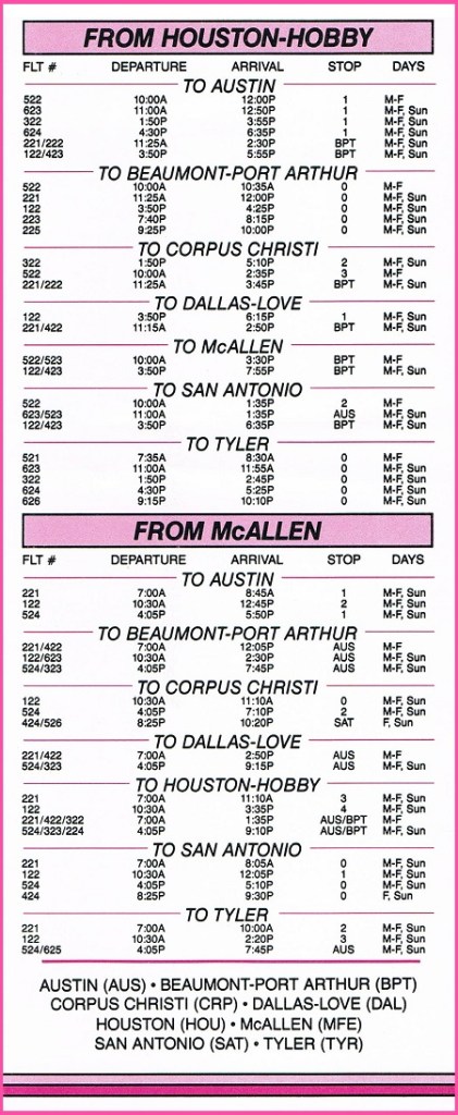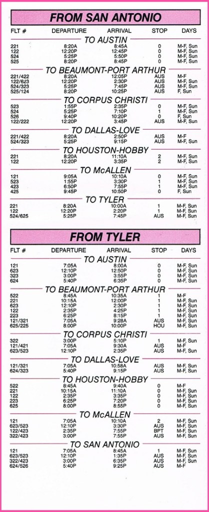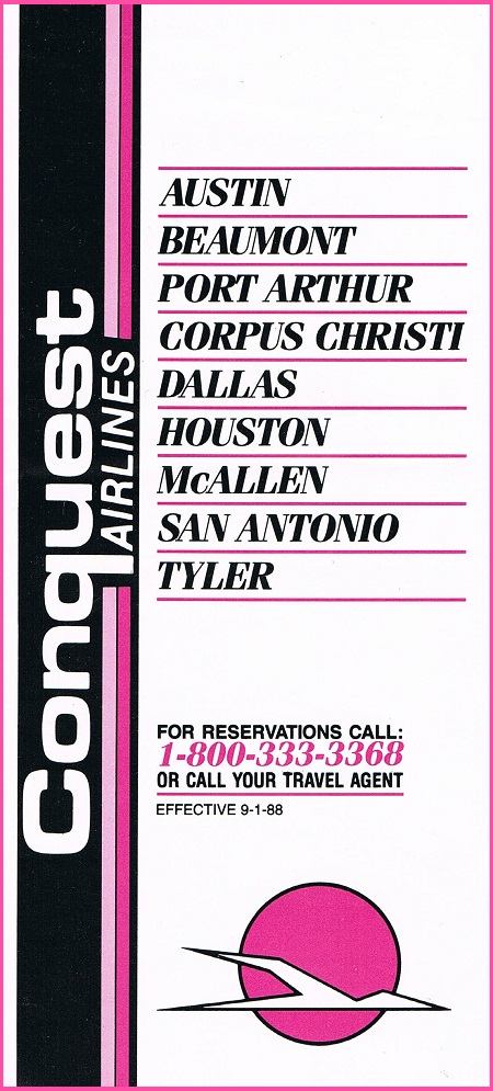 Conquest Airlines September 1, 1988 System Timetable PREVIOUS PAGE MAIN PAGE Share this: Click to share on X (Opens in new window) X Click to share on Facebook (Opens in new window) Facebook Like Loading...