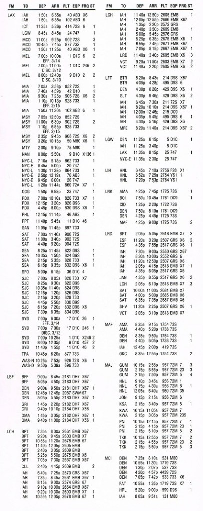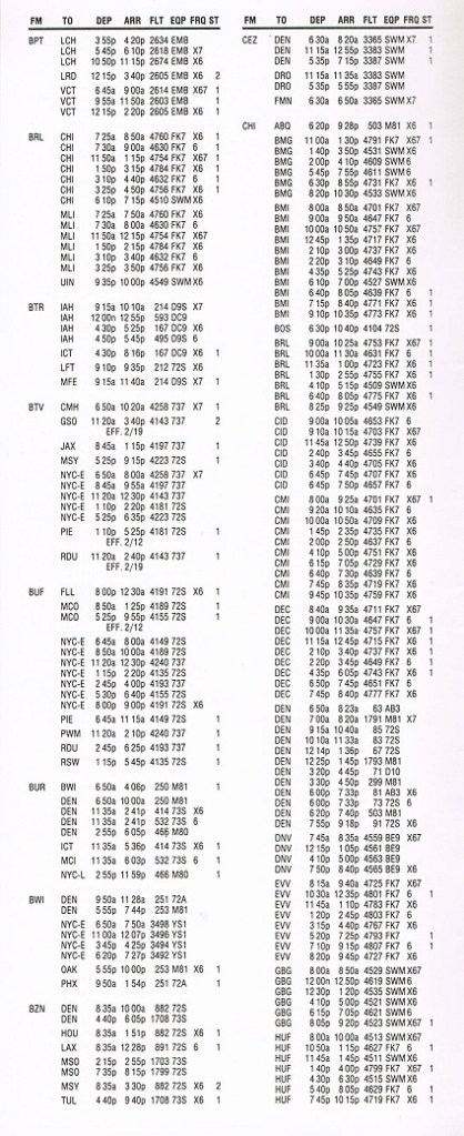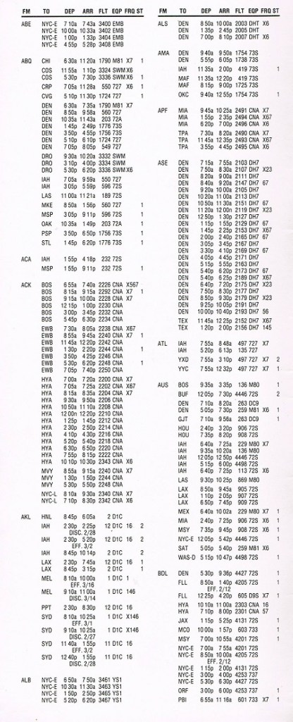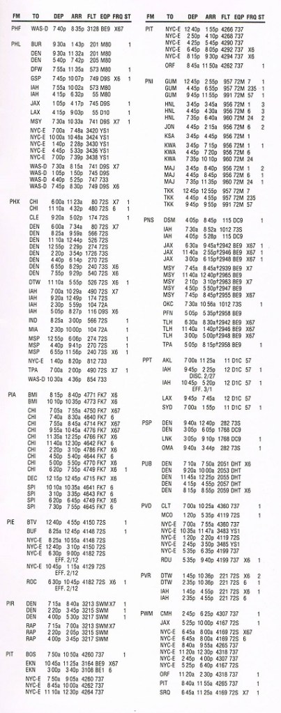 Continental Airlines February 1, 1987 Employee Timetable PREVIOUS PAGE MAIN PAGE Share this: Click to share on X (Opens in new window) X Click to share on Facebook (Opens in new window) Facebook Like Loading...