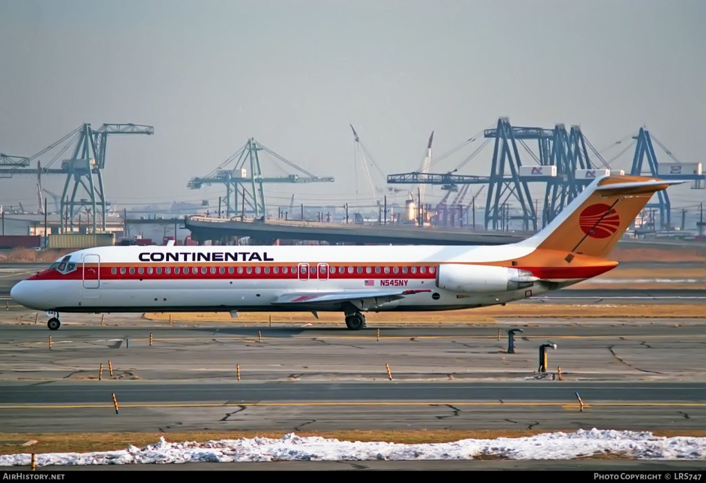 Continental Airlines McDonnell Douglas DC-9-32, N545NY, is shown at Newark on January 6, 1987.