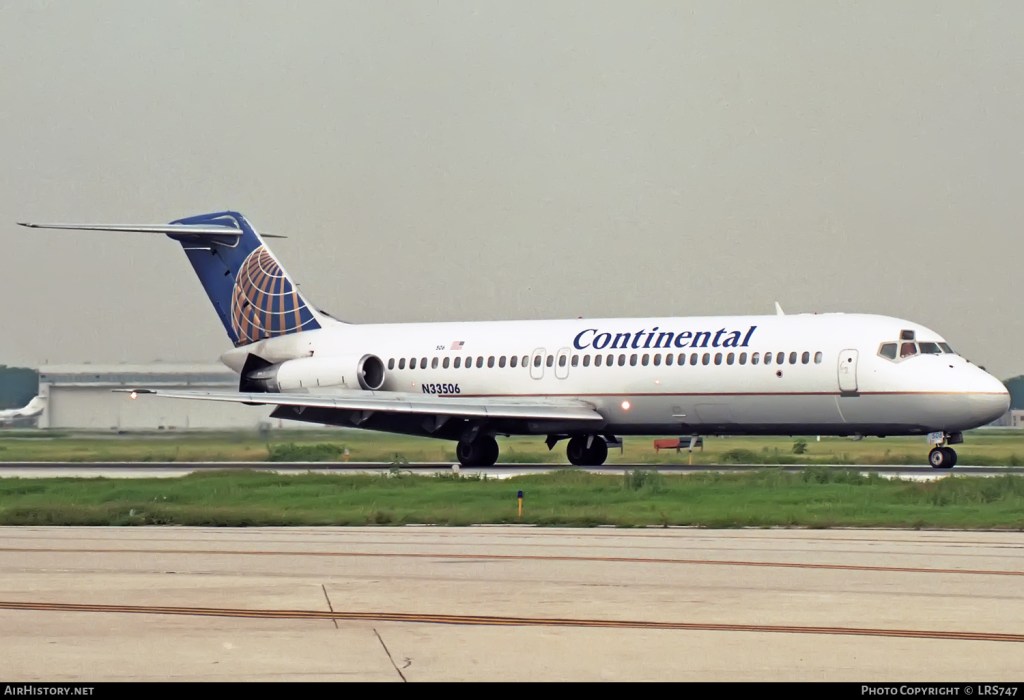 Continental Airlines McDonnell Douglas DC-9-32, N33506, is shown at Chicago Midway Airport on August 2, 1996 wearing the carrier’s 1991-introduced livery.