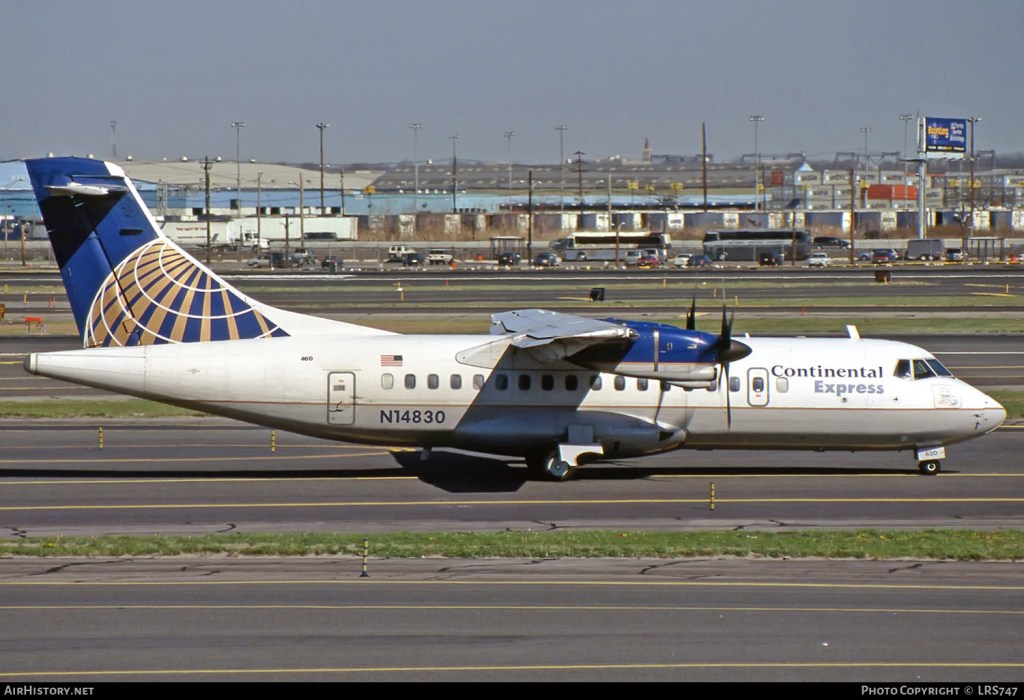 Continental Express Aerospatiale ATR-42-320, N14830, is shown at Newark on April 14, 1999.