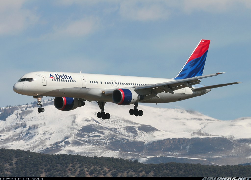 Delta Air Lines Boeing 757-232, N607DL, is shown arriving at Vail on March 11, 2007 wearing the carrier’s 2000-introduced livery.