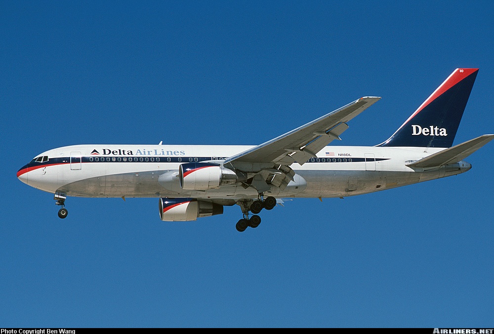 Delta Air Lines Boeing 767-232, N101DA, is shown arriving at Tampa on February 14, 2005 wearing the carrier’s 2000-introduced livery.