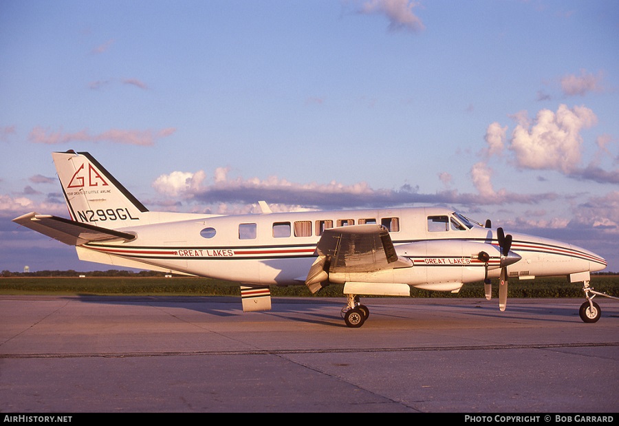 Great Lakes Aviation Beech 99 Great Lakes Aviation Beech 99, N299GL, is shown at Spencer, Iowa on Auust 23, 1985. (Photo credit: Bob Garrard) Share this: Share on X (Opens in new window) X Share on Facebook (Opens in new window) Facebook Like Loading...