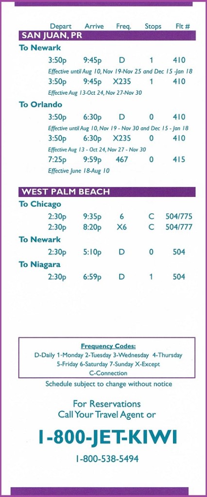 Kiwi International Air Lines Spring/Summer 1996 System Timetable PREVIOUS PAGE MAIN PAGE Share this: Click to share on X (Opens in new window) X Click to share on Facebook (Opens in new window) Facebook Like Loading...
