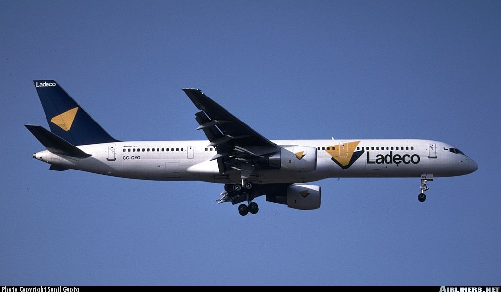 Ladeco Boeing 757-200 Ladeco Boeing 757-2Q8, CC-CYG, is shown arriving at Baltimore in April 1996. (Photo credit: Sunil Gupta) Share this: Click to share on X (Opens in new window) X Click to share on Facebook (Opens in new window) Facebook Like Loading...