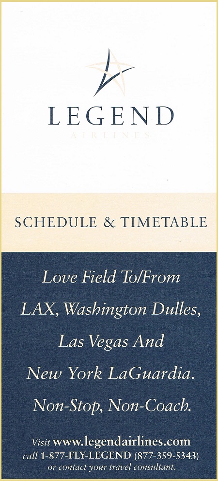 Legend Airlines September 6, 2000 Flight Schedule PREVIOUS PAGE MAIN PAGE Share this: Click to share on X (Opens in new window) X Click to share on Facebook (Opens in new window) Facebook Like Loading...