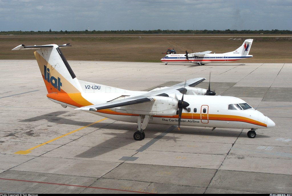 LIAT De Havilland Canada Dash 8-100 LIAT De Havilland DHC-8-103 Dash 8, V2-LDU, is shown at Santo Domingo on February 29, 2004. (Photo credit: Toni Marimon) Share this: Click to share on X (Opens in new window) X Click to share on Facebook (Opens in new window) Facebook Like Loading...