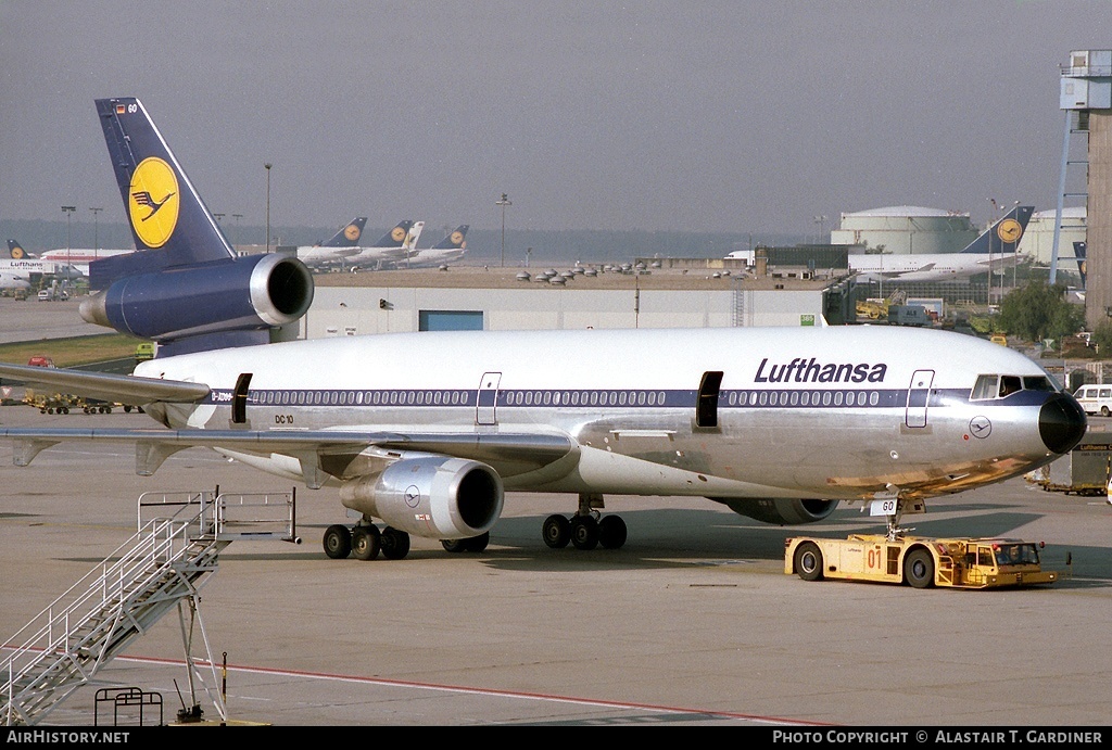 Lufthansa McDonnell Douglas DC-10 Lufthansa McDonnell Douglas DC-10-30, D-ADGO, is shown at Frankfurt on October 5, 1991. (Photo credit: Alastair T. Gardiner) Share this: Share on X (Opens in new window) X Share on Facebook (Opens in new window) Facebook Like Loading...