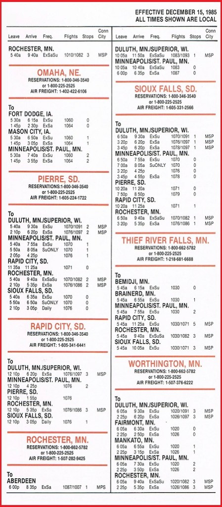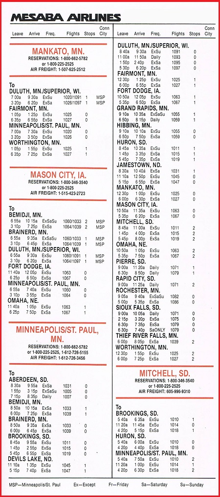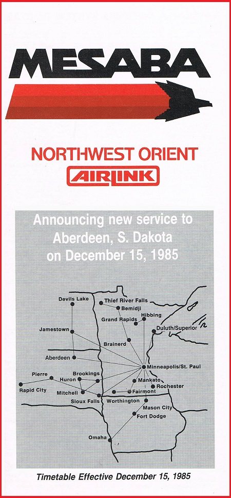 Mesaba Airlines December 15, 1985 System Timetable PREVIOUS PAGE MAIN PAGE Share this: Click to share on X (Opens in new window) X Click to share on Facebook (Opens in new window) Facebook Like Loading...