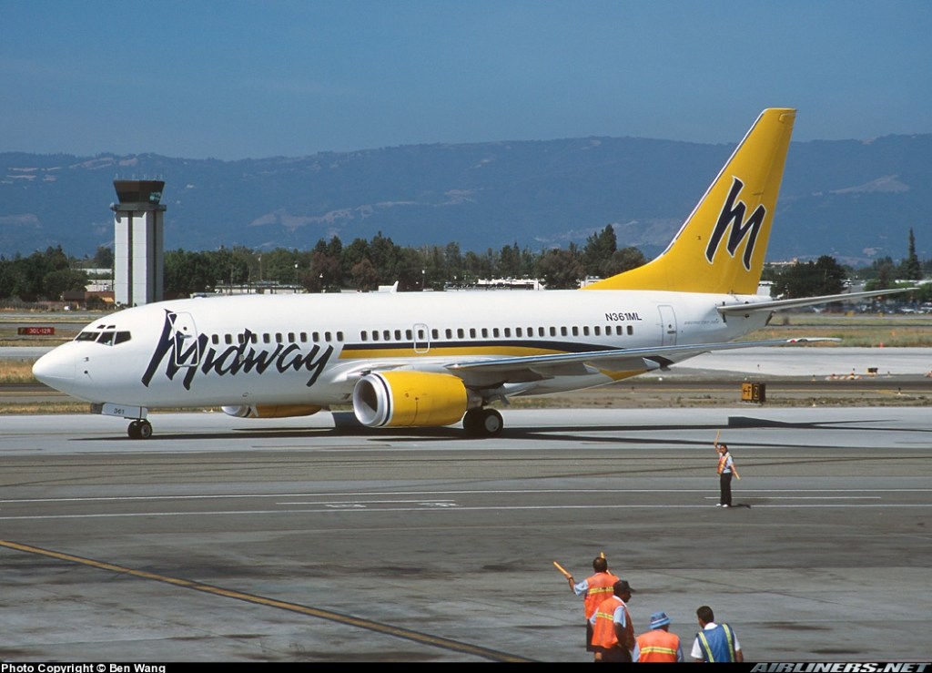 Midway Airlines Boeing 737-700 Midway Airlines Boeing 737-7BX, N361ML, is shown at San Jose on June 2, 2001. (Photo credit: Ben Wang) Share this: Click to share on X (Opens in new window) X Click to share on Facebook (Opens in new window) Facebook Like Loading...