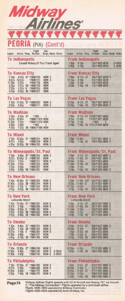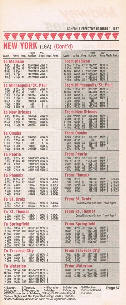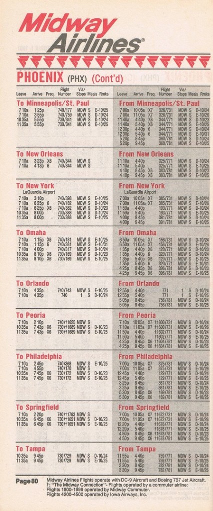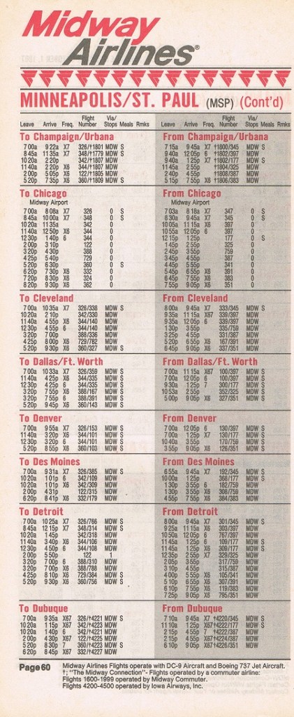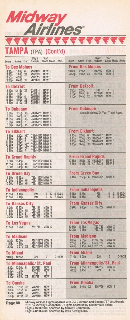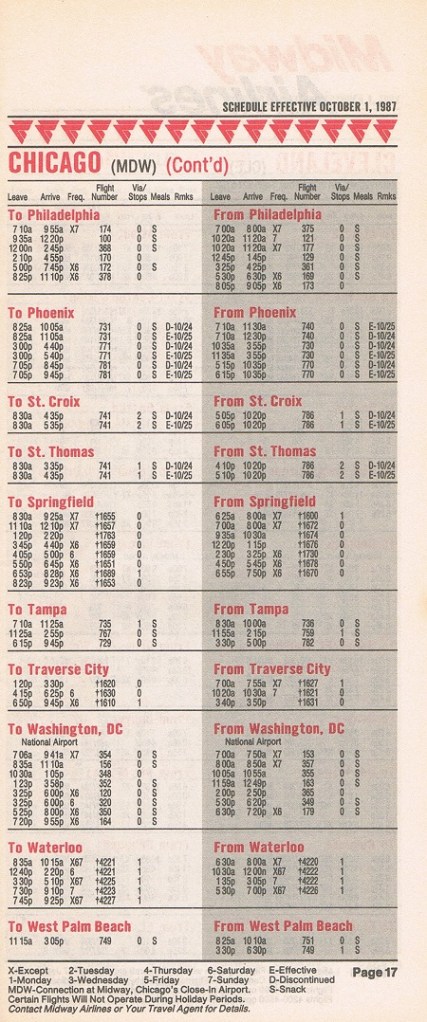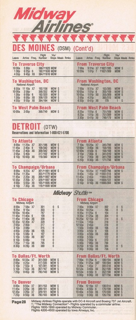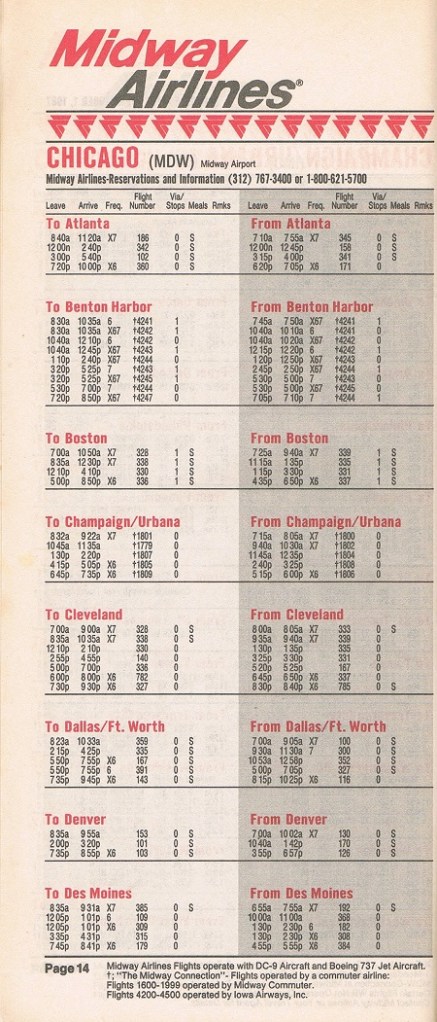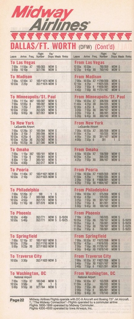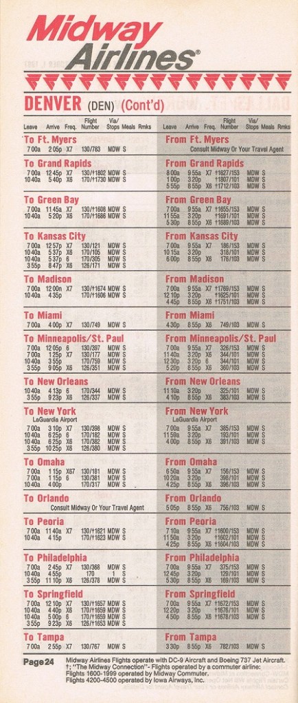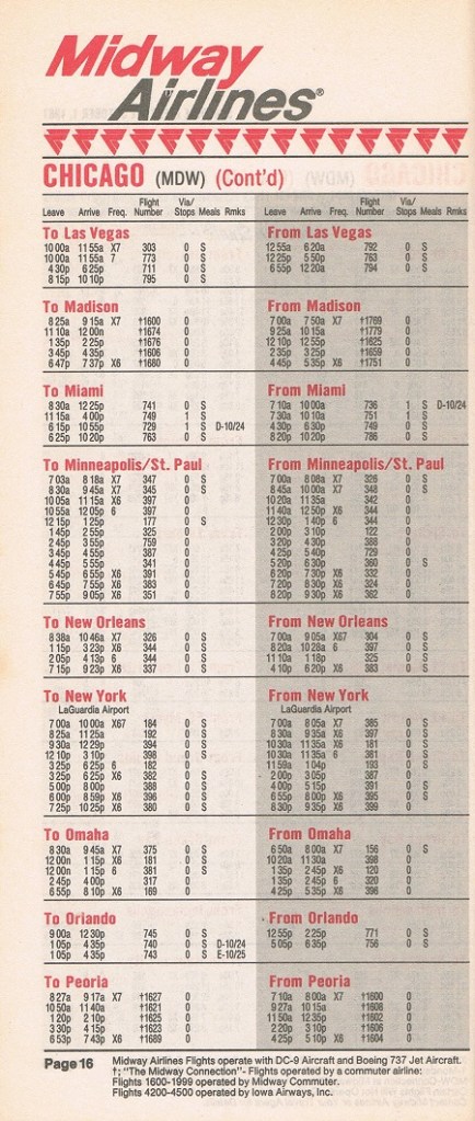 Midway Airlines October 1, 1987 System Timetable PREVIOUS PAGE MAIN PAGE Share this: Click to share on X (Opens in new window) X Click to share on Facebook (Opens in new window) Facebook Like Loading...