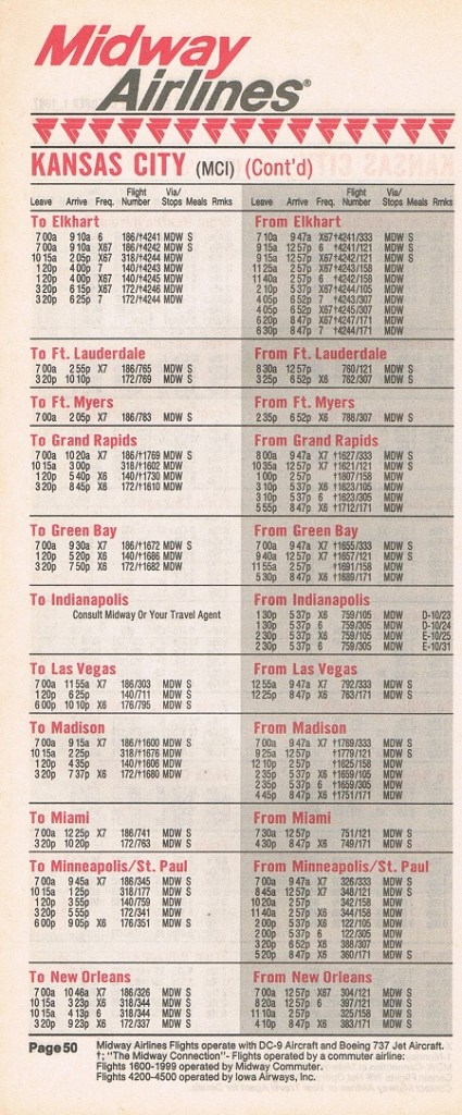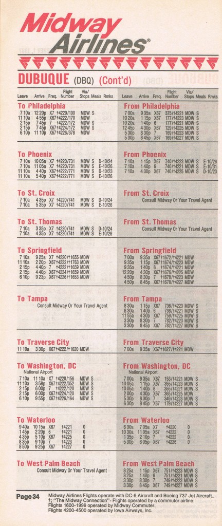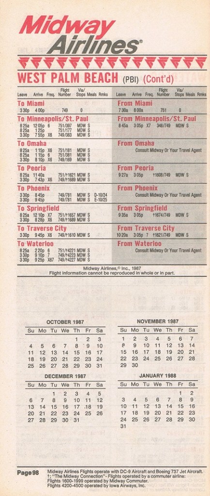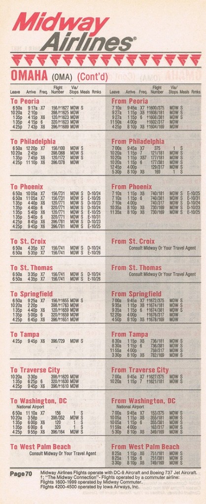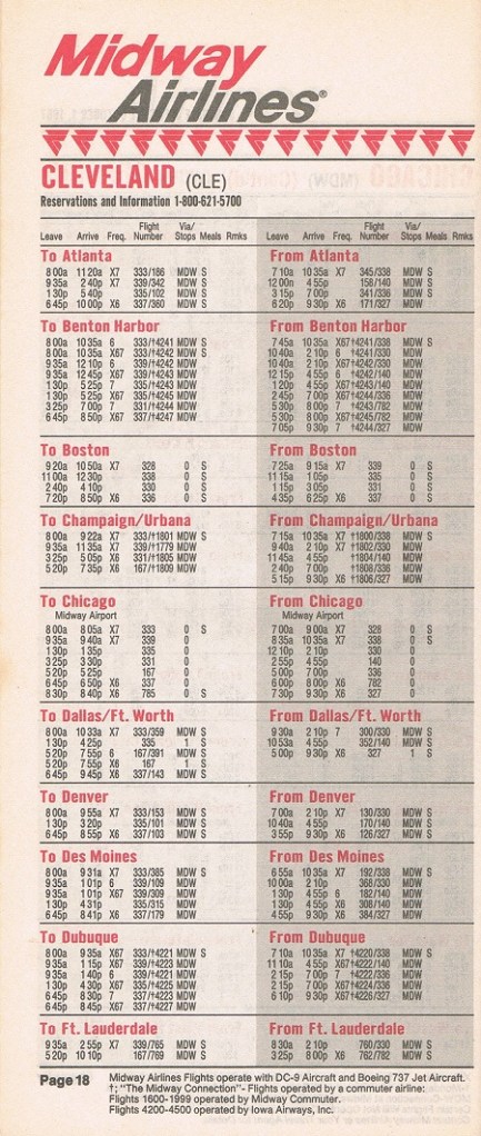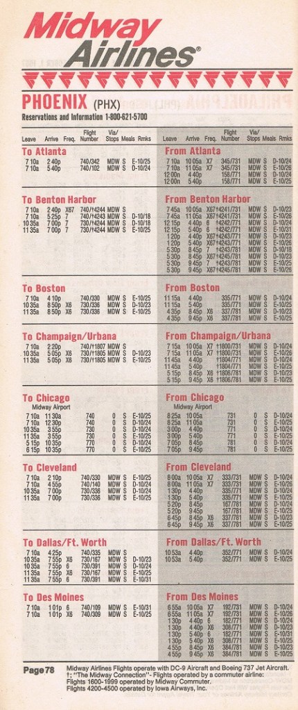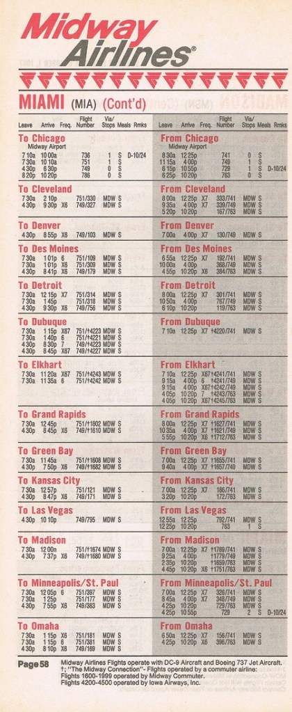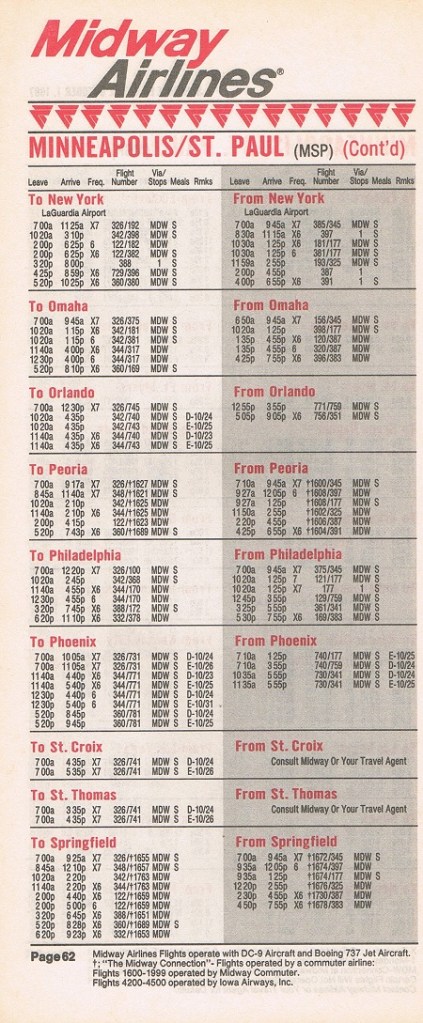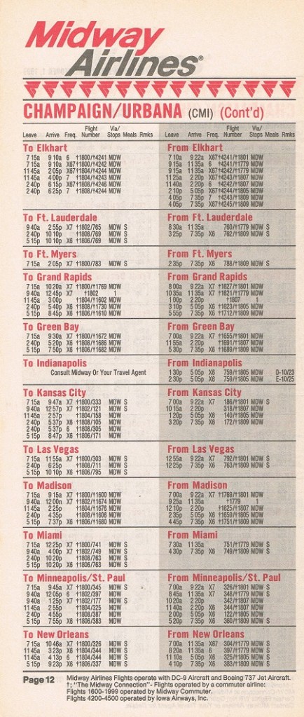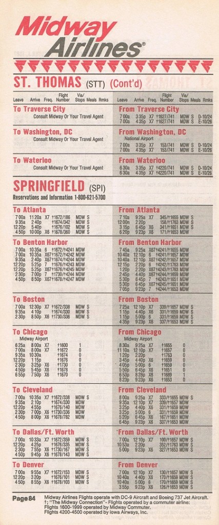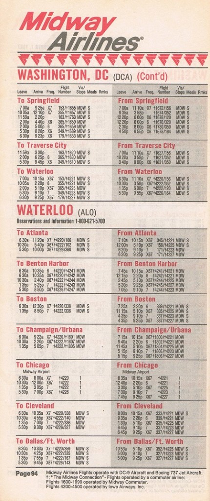 Midway Airlines October 1, 1987 System Timetable PREVIOUS PAGE MAIN PAGE Share this: Click to share on X (Opens in new window) X Click to share on Facebook (Opens in new window) Facebook Like Loading...