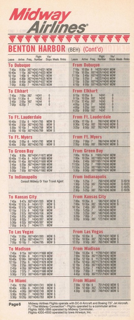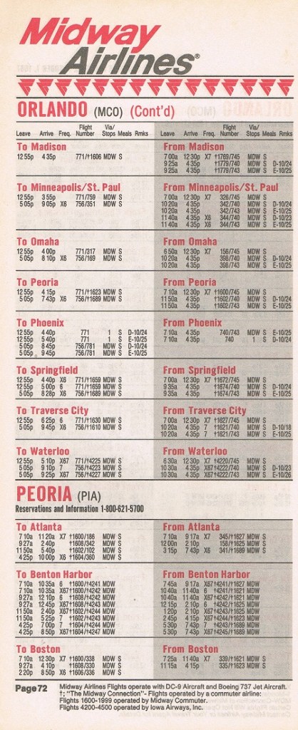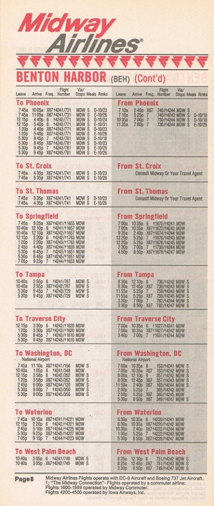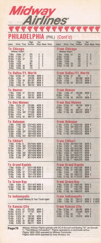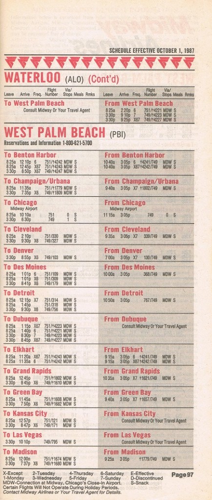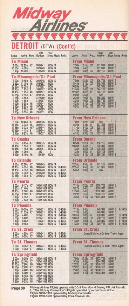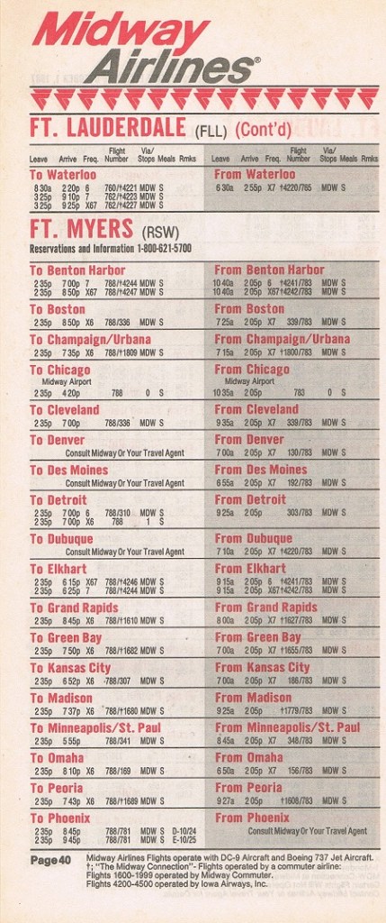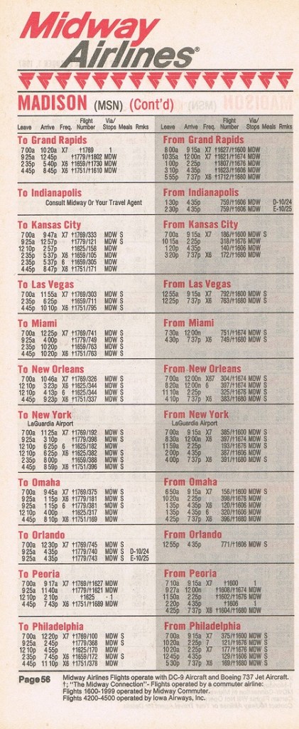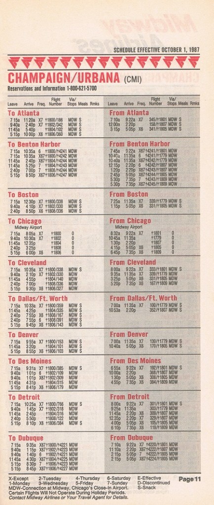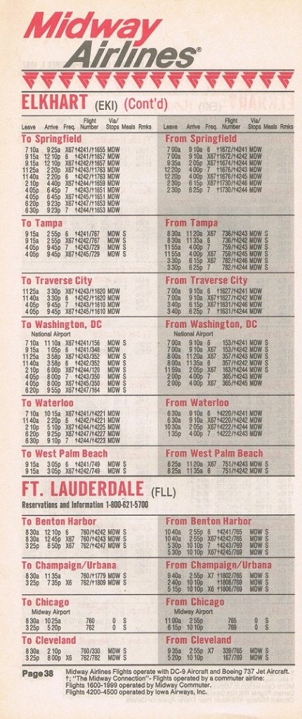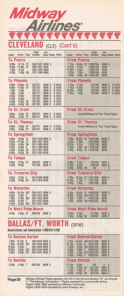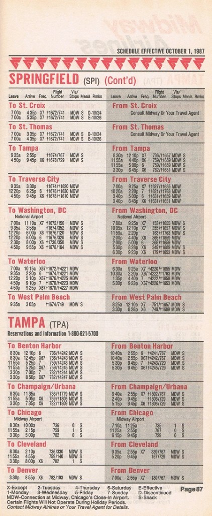 Midway Airlines October 1, 1987 System Timetable PREVIOUS PAGE MAIN PAGE Share this: Click to share on X (Opens in new window) X Click to share on Facebook (Opens in new window) Facebook Like Loading...