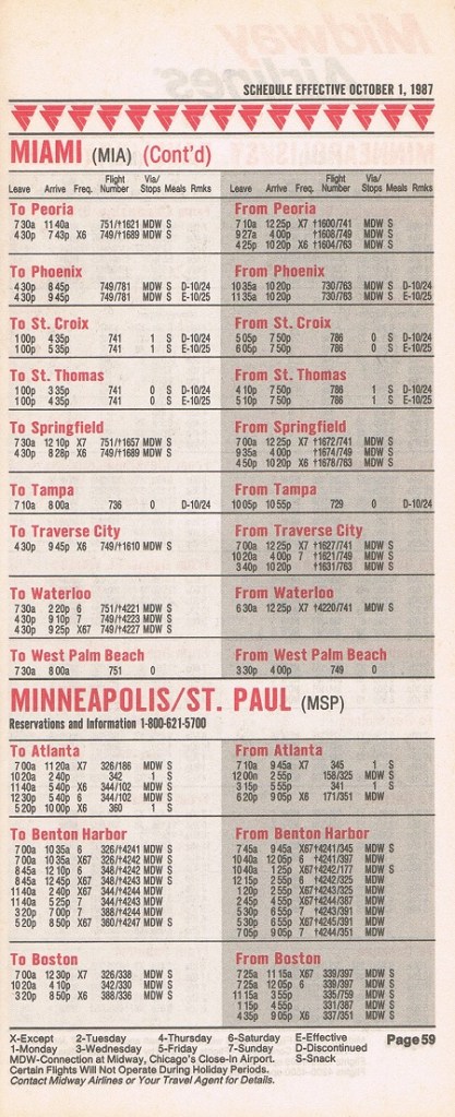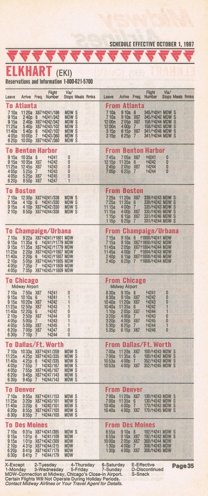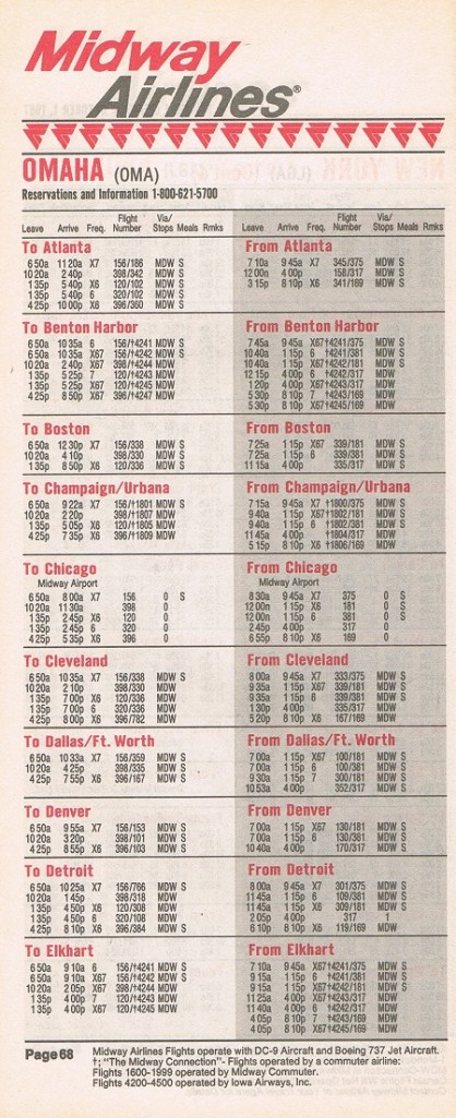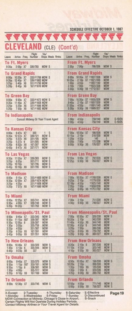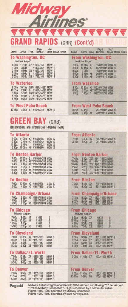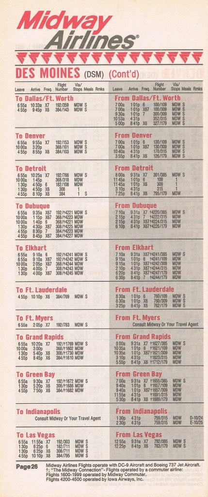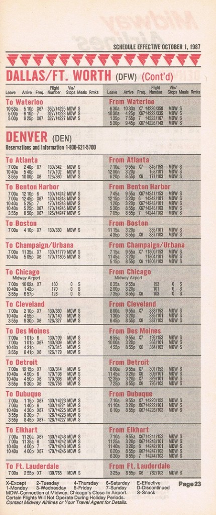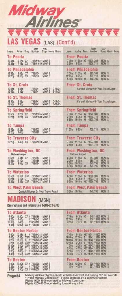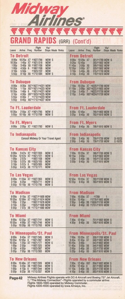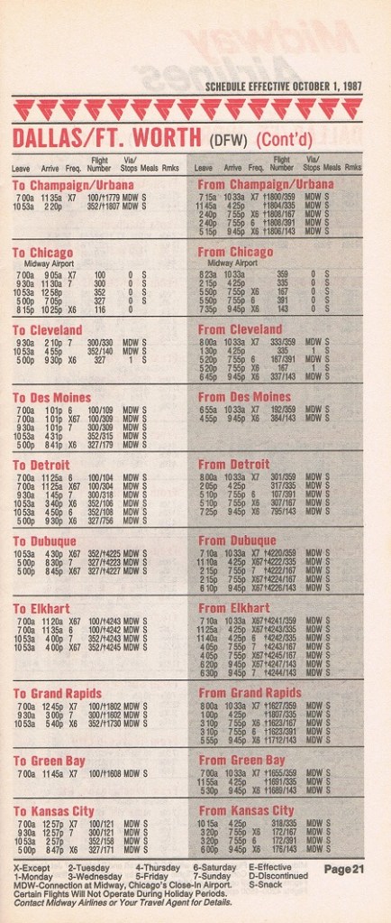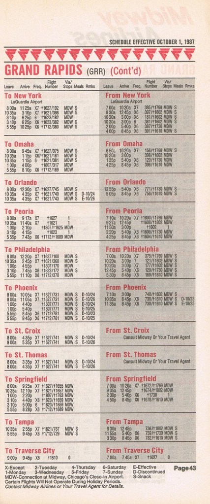 Midway Airlines October 1, 1987 System Timetable PREVIOUS PAGE MAIN PAGE Share this: Click to share on X (Opens in new window) X Click to share on Facebook (Opens in new window) Facebook Like Loading...