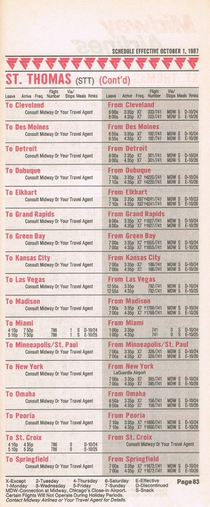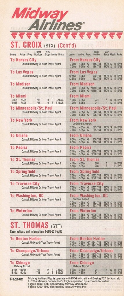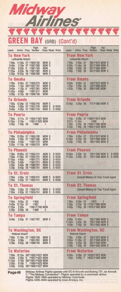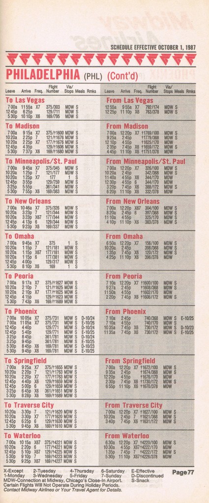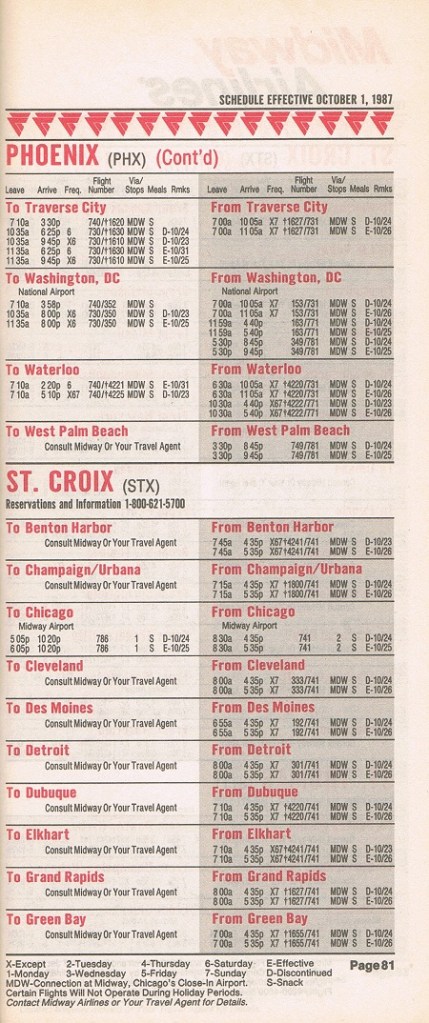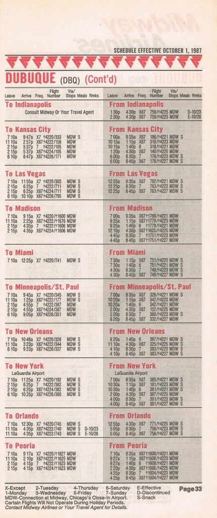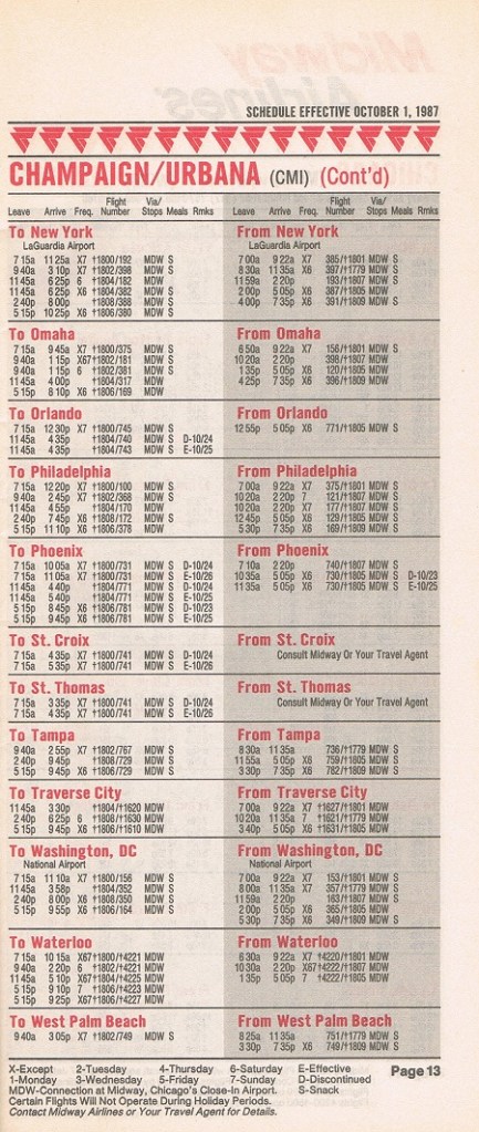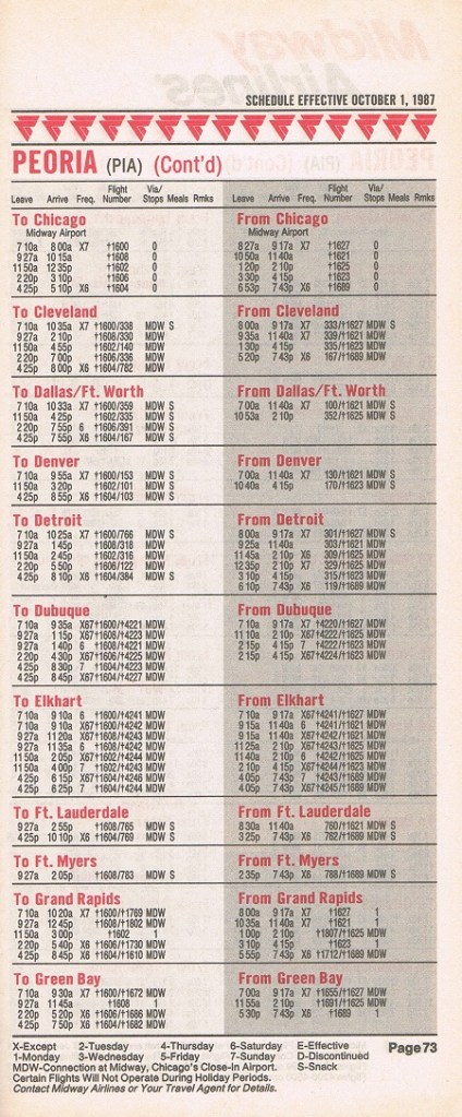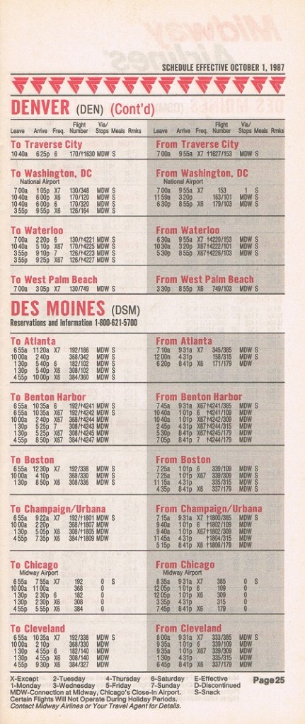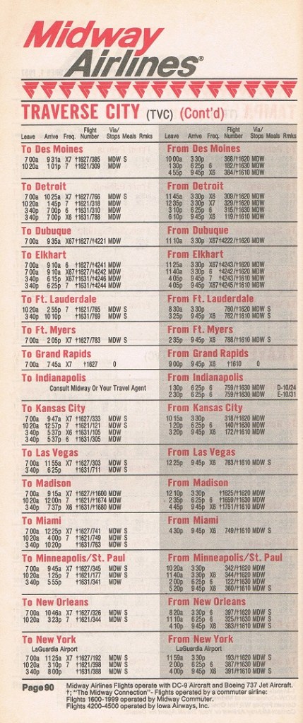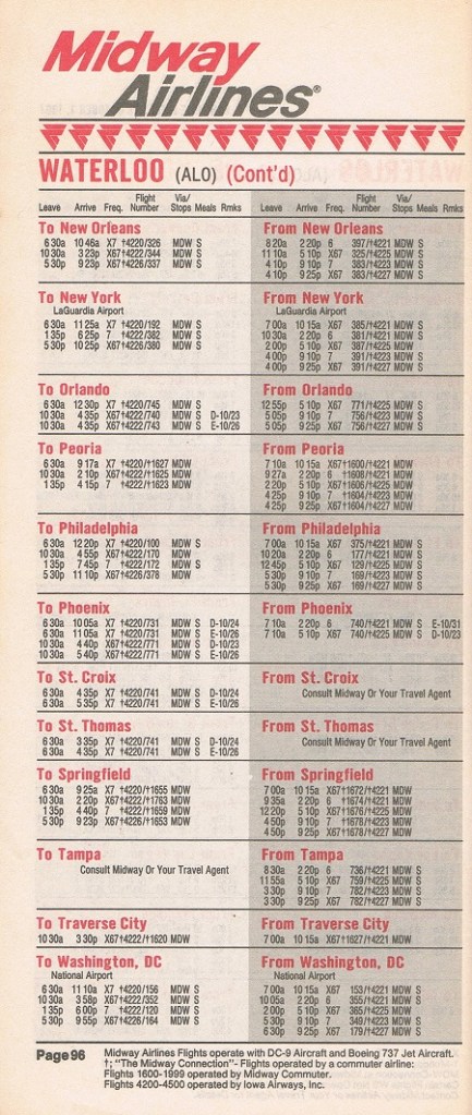 Midway Airlines October 1, 1987 System Timetable PREVIOUS PAGE MAIN PAGE Share this: Click to share on X (Opens in new window) X Click to share on Facebook (Opens in new window) Facebook Like Loading...