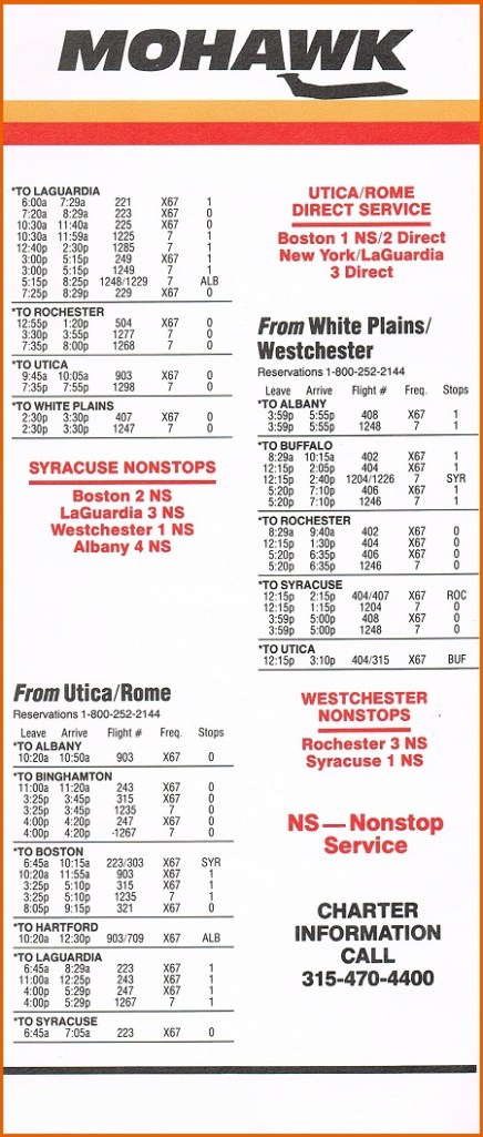 Mohawk Airlines August 11, 1991 System Timetable PREVIOUS PAGE MAIN PAGE Share this: Click to share on X (Opens in new window) X Click to share on Facebook (Opens in new window) Facebook Like Loading...