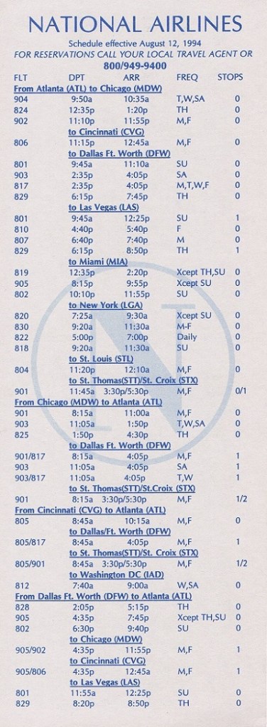 National Airlines (5J) August 12, 1994 System Timetable PREVIOUS PAGE MAIN PAGE Share this: Click to share on X (Opens in new window) X Click to share on Facebook (Opens in new window) Facebook Like Loading...
