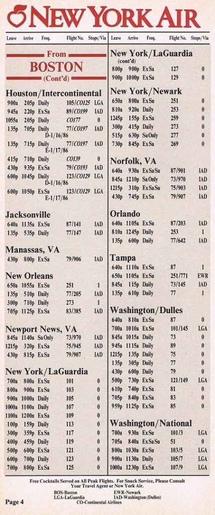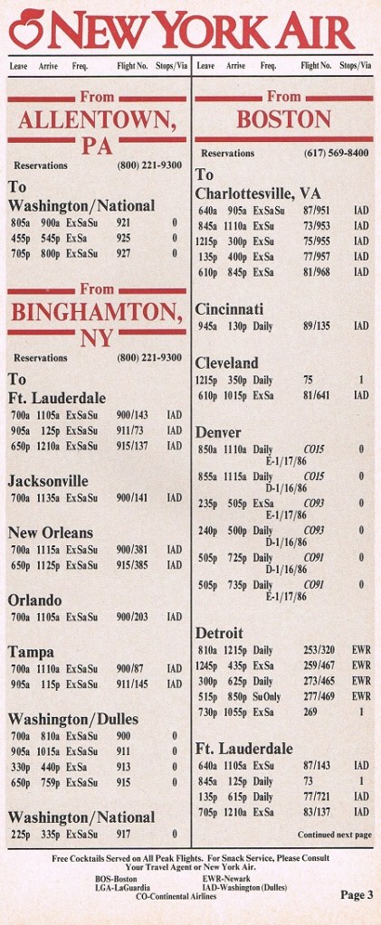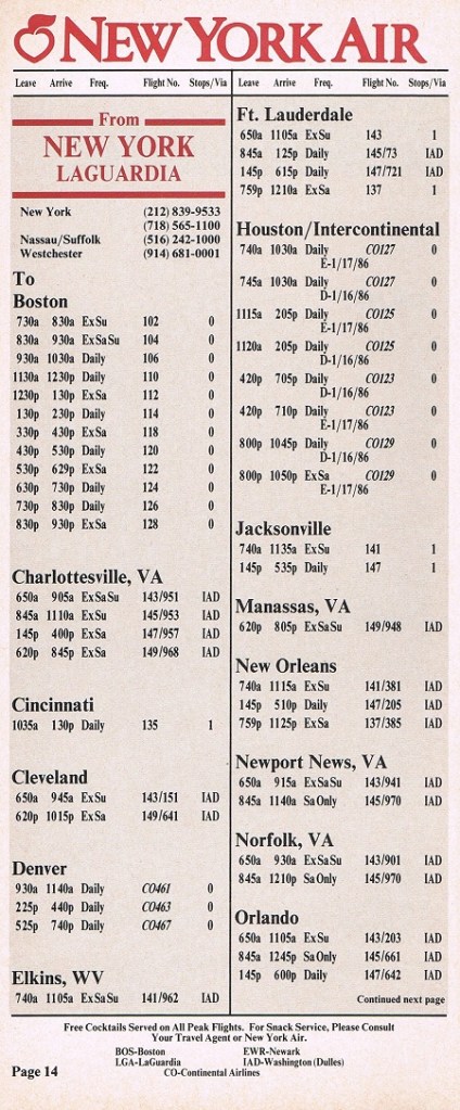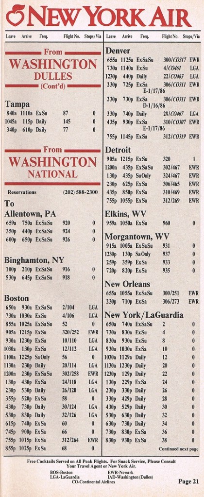 New York Air January 7, 1986 System Timetable PREVIOUS PAGE MAIN PAGE Share this: Share on X (Opens in new window) X Share on Facebook (Opens in new window) Facebook Like Loading...