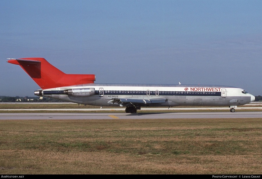 Northwest Airlines Boeing 727-251, N256US, is shown at Orlando on November 15, 1991.