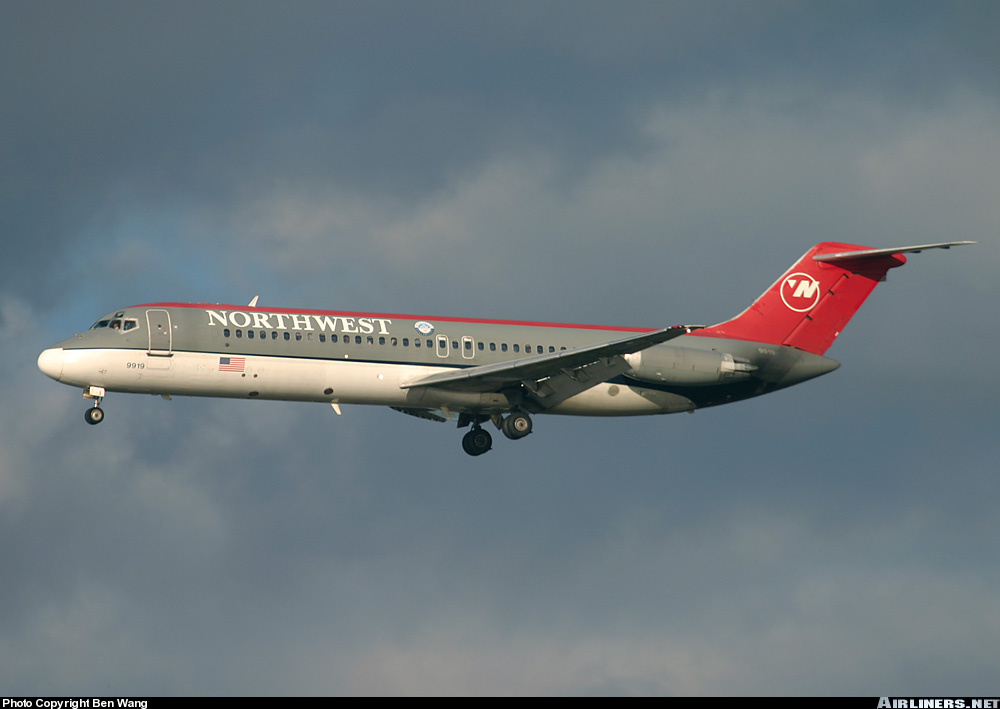 Northwest Airlines McDonnell Douglas DC-9-32, N941N, is shown arriving at Kennedy International Airport on October 18, 2003 wearing the carrier’s 1989-introduced livery.