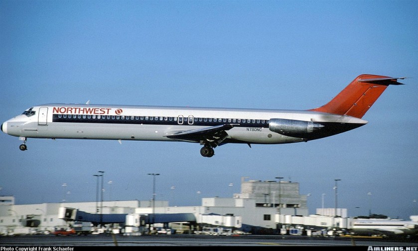 Northwest Airlines McDonnell Douglas DC-9-51, N780NC, is shown arriving at Miami in March 1993.
