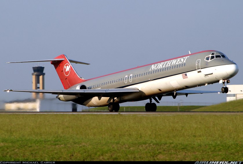Northwest Airlines McDonnell Douglas DC-9-51, N783NC, is shown departing Nashville on May 24, 2006 wearing the carrier’s 1989-introduced livery.