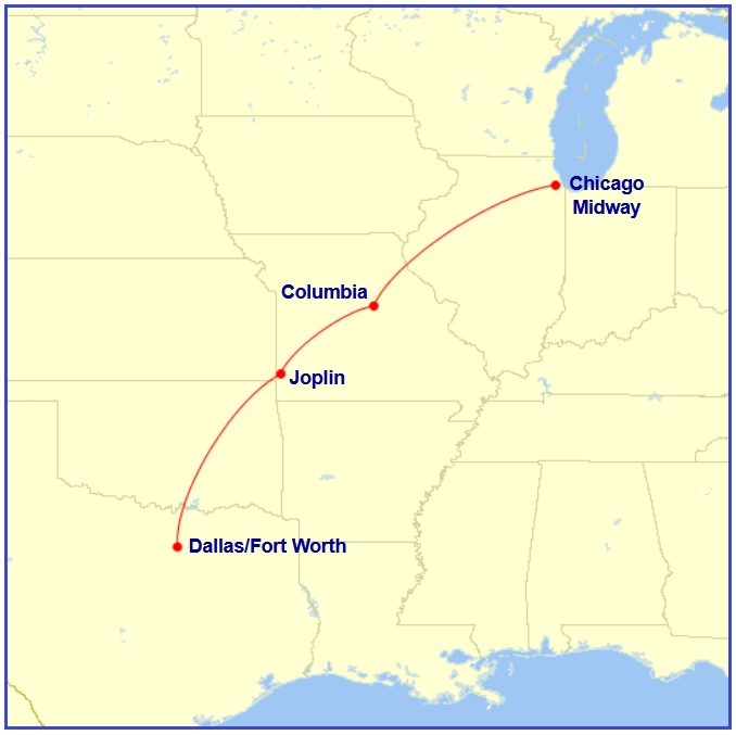 Ozark Air Lines July 8, 2000 Map generated by the Great Circle Mapper – copyright © Karl L. Swartz. PREVIOUS PAGE MAIN PAGE Share this: Click to share on X (Opens in new window) X Click to share on Facebook (Opens in new window) Facebook Like Loading...