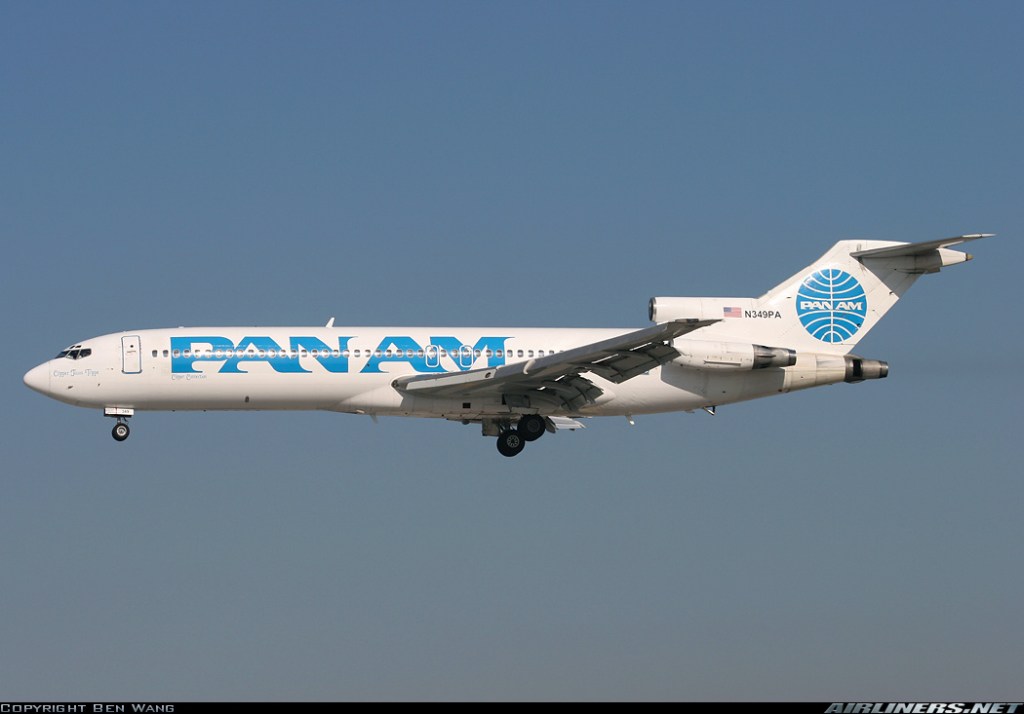 Pan Am Clipper Connection Boeing 727-222, N349PA, is shown arriving at San Jose, California on October 27, 2006.