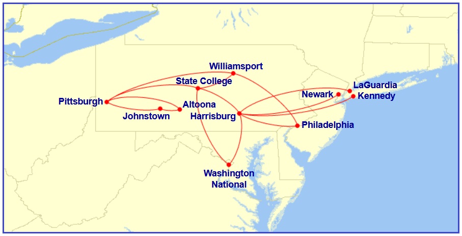 Pennsylvania Airlines November 1, 1983 Map generated by the Great Circle Mapper – copyright © Karl L. Swartz. PREVIOUS PAGE MAIN PAGE Share this: Click to share on X (Opens in new window) X Click to share on Facebook (Opens in new window) Facebook Like Loading...