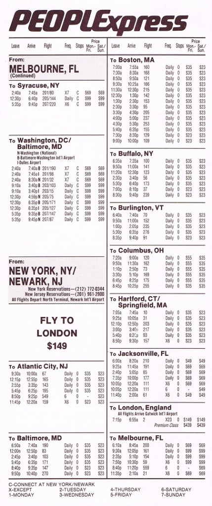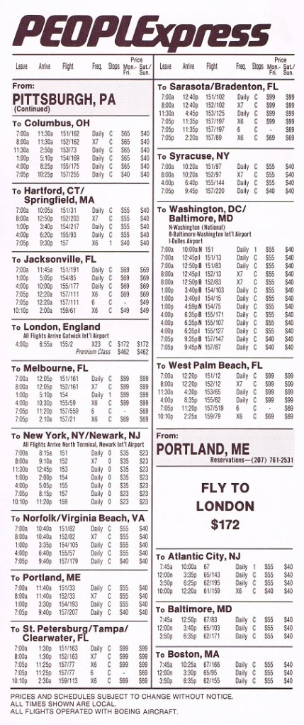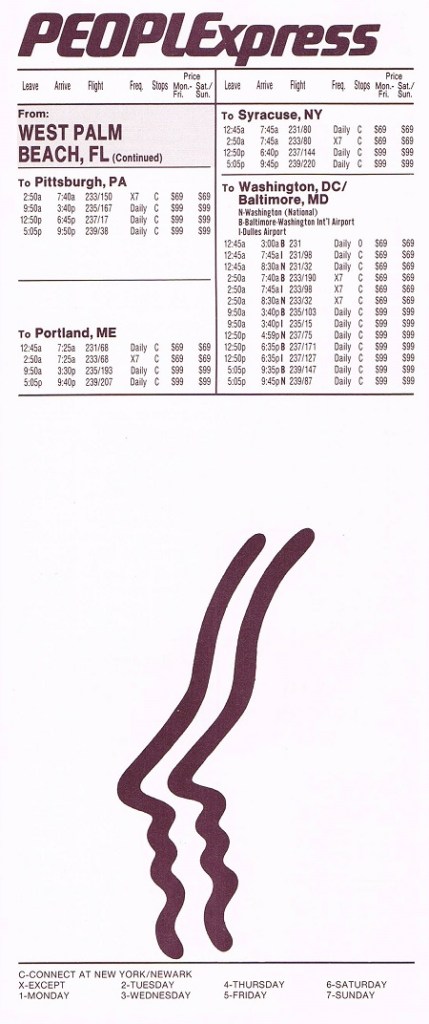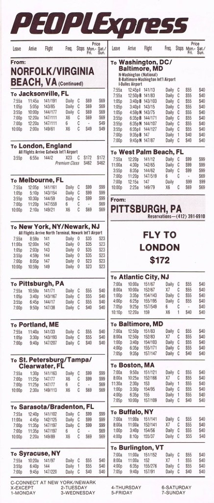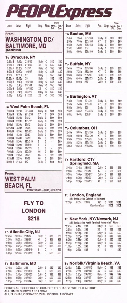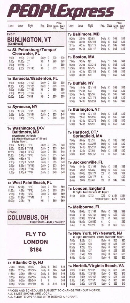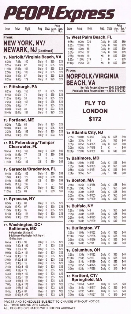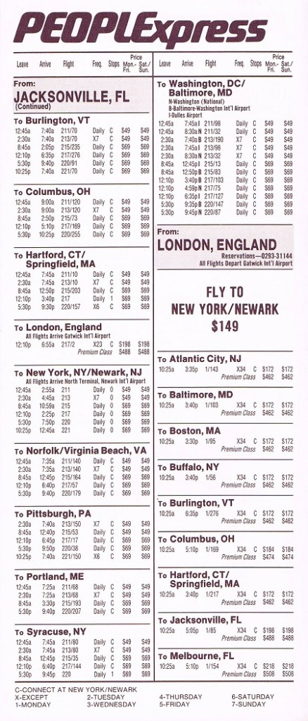 People Express Airlines June 1, 1983 System Timetable PREVIOUS PAGE MAIN PAGE Share this: Click to share on X (Opens in new window) X Click to share on Facebook (Opens in new window) Facebook Like Loading...